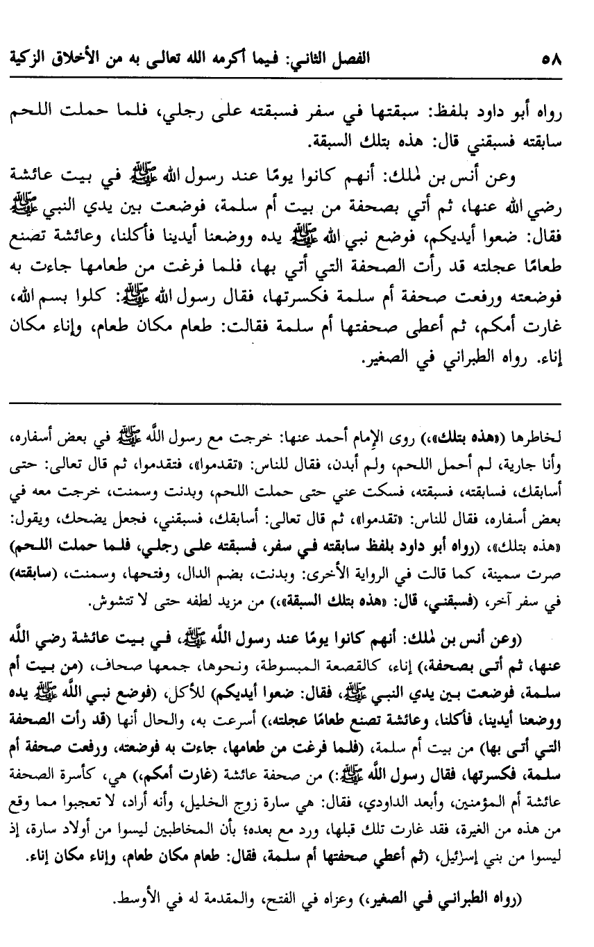 رواه أبو داود بلفظ: سبقتها في سفر فسبقته على رجلي، فلما حملت اللحم سابقته فسبقني قال: "هذه بتلك السبقة".