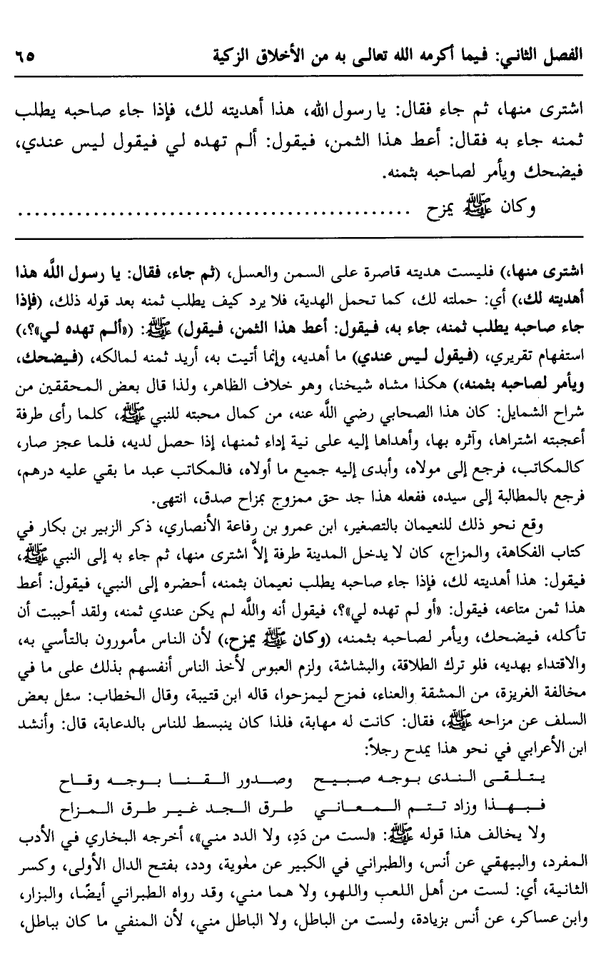اشترى منها، ثم جاء فقال: يا رسول الله، هذا أهديته لك، فإذا جاء صاحبه يطلب ثمنه جاء به فقال: أعط هذا الثمن، فيقول: "ألم تهده لي" , فيقول: ليس عندي، فيضحك ويأمر لصاحبه بثمنه.