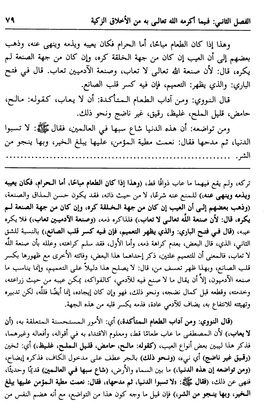 قال النووي: ومن آداب الطعام المتأكد أن لا يعاب، كقوله: مالح، حامض، قليل الملح، غليظ، رقيق، غير ناضج ونحو ذلك.