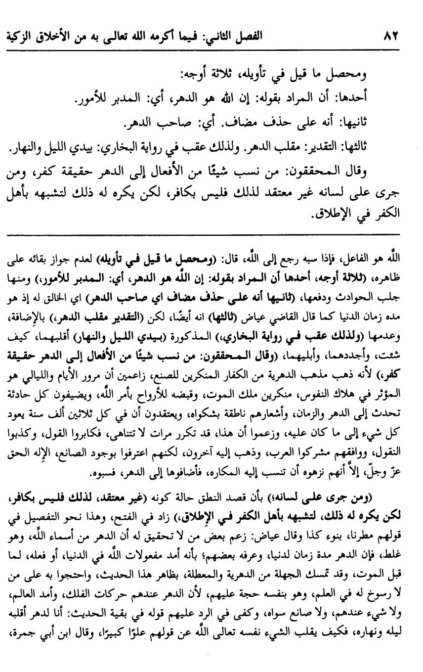 وقال المحققون: من نسب شيئًا من الأفعال إلى الدهر حقيقة كفر، ومن جرى على لسانه غير معتقد لذلك فليس بكافر، لكن يكره له ذلك لتشبهه بأهل الكفر في الإطلاق.