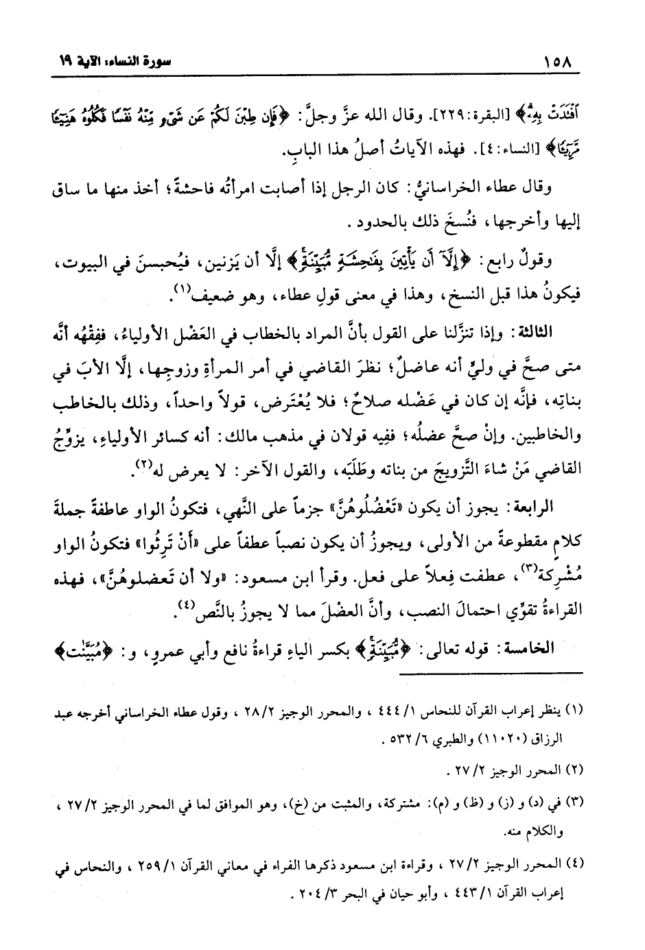 (2). كذا في الأصل وفي تفسير ابن عطية. والذي في البحر: (وهذا الوعيد كغيره مقيد بالمشيئة، وله تعالى أن يغفر هذا الذنب ولكن في الوعيد خوف على المتوعد عليه نفاذ الوعيد) وهو أوضح.