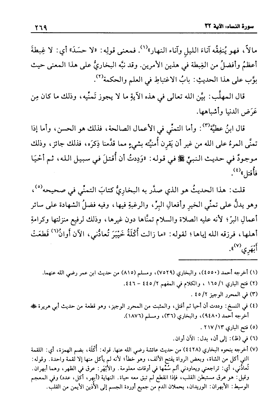 السَّابِعَةُ- قَوْلُ الْحَالِفِ: لَأَفْعَلَنَّ، وَإِنْ لَمْ أَفْعَلْ، بِمَنْزِلَةِ الْأَمْرِ وَقَوْلِهِ: لَا أَفْعَلُ، وَإِنْ فَعَلْتُ، بِمَنْزِلَةِ النَّهْيِ. فَفِي الْأَوَّلِ لَا يَبَرُّ حَتَّى يَفْعَلَ جَمِيعَ الْمَحْلُوفِ عَلَيْهِ: مِثَالُهُ لَآكُلَنَّ هَذَا الرَّغِيفَ فَأَكَلَ بَعْضَهُ لَا يَبَرُّ حَتَّى يَأْكُلَ جَمِيعَهُ: لِأَنَّ كُلَّ جُزْءٍ مِنْهُ مَحْلُوفٌ عَلَيْهِ. فَإِنْ قَالَ: وَاللَّهِ لَآكُلَنَّ- مُطْلَقًا- فَإِنَّهُ يَبَرُّ بِأَقَلِّ جُزْءٍ مِمَّا يَقَعُ عَلَيْهِ الِاسْمُ، لِإِدْخَالِ مَاهِيَّةِ الْأَكْلِ فِي الْوُجُودِ. وَأَمَّا فِي النَّهْيِ فَإِنَّهُ يَحْنَثُ بِأَقَلِّ مَا يَنْطَلِقُ عَلَيْهِ الِاسْمُ، لِأَنَّ مُقْتَضَاهُ أَلَّا يَدْخُلَ فَرْدٌ مِنْ أَفْرَادِ الْمَنْهِيِّ عَنْهُ فِي الْوُجُودِ، فَإِنْ حَلَفَ أَلَّا يَدْخُلَ دَارًا فَأَدْخَلَ إِحْدَى رِجْلَيْهِ حَنِثَ، وَالدَّلِيلُ عَلَيْهِ أَنَّا وَجَدْنَا الشَّارِعَ غَلَّظَ جِهَةَ التَّحْرِيمِ بِأَوَّلِ الِاسْمِ فِي قَوْلُهُ تَعَالَى:" وَلا تَنْكِحُوا مَا نَكَحَ آباؤُكُمْ" «1»] النساء: 22]، فَمَنْ عَقَدَ عَلَى امْرَأَةٍ وَلَمْ يَدْخُلْ بِهَا حَرُمَتْ عَلَى أَبِيهِ وَابْنِهِ، وَلَمْ يَكْتَفِ فِي جِهَةِ التَّحْلِيلِ بِأَوَّلِ الِاسْمِ فَقَالَ:] لَا حَتَّى تَذُوقِي عُسَيْلَتَهُ [. الثَّامِنَةُ- الْمَحْلُوفُ بِهِ هُوَ اللَّهُ سُبْحَانَهُ وَأَسْمَاؤُهُ الْحُسْنَى، كَالرَّحْمَنِ وَالرَّحِيمِ وَالسَّمِيعِ وَالْعَلِيمِ وَالْحَلِيمِ، وَنَحْوِ ذَلِكَ مِنْ أَسْمَائِهِ وَصِفَاتِهِ الْعُلْيَا، كَعِزَّتِهِ وَقُدْرَتِهِ وَعِلْمِهِ وَإِرَادَتِهِ وَكِبْرِيَائِهِ وَعَظَمَتِهِ وَعَهْدِهِ وَمِيثَاقِهِ وَسَائِرِ صِفَاتِ ذَاتِهِ، لِأَنَّهَا يَمِينٌ بِقَدِيمٍ غَيْرِ مَخْلُوقٍ، فَكَانَ الْحَالِفُ بِهَا كَالْحَالِفِ بِالذَّاتِ. رَوَى التِّرْمِذِيُّ وَالنَّسَائِيُّ وَغَيْرُهُمَا أَنَّ جِبْرِيلَ عَلَيْهِ السَّلَامُ لَمَّا نَظَرَ إِلَى الْجَنَّةِ وَرَجَعَ إِلَى اللَّهِ تَعَالَى قَالَ: وَعِزَّتِكَ لَا يَسْمَعُ بِهَا أَحَدٌ إِلَّا دَخَلَهَا، وَكَذَلِكَ قَالَ فِي النَّارِ: وعزتك لا يسمع بها أحدا فَيَدْخُلَهَا. وَخَرَّجَا أَيْضًا وَغَيْرُهُمَا عَنِ ابْنِ عُمَرَ قَالَ: كَانَتْ يَمِينُ النَّبِيِّ صَلَّى اللَّهُ عَلَيْهِ وَسَلَّمَ] لَا وَمُقَلِّبِ الْقُلُوبِ [وَفَى رِوَايَةٍ] لَا وَمُصَرِّفِ الْقُلُوبِ [وَأَجْمَعَ أَهْلُ الْعِلْمِ عَلَى أَنَّ مَنْ حَلَفَ فَقَالَ: وَاللَّهِ أَوْ بِاللَّهِ أَوْ تَاللَّهِ فَحَنِثَ أَنَّ عَلَيْهِ الْكَفَّارَةَ. قَالَ ابْنُ الْمُنْذِرِ: وَكَانَ مَالِكٌ وَالشَّافِعِيُّ وَأَبُو عُبَيْدٍ وَأَبُو ثَوْرٍ وَإِسْحَاقُ وَأَصْحَابُ الرَّأْيِ يَقُولُونَ: مَنْ حَلَفَ بِاسْمٍ مِنْ أَسْمَاءِ اللَّهِ وَحَنِثَ فَعَلَيْهِ الْكَفَّارَةُ، وَبِهِ نَقُولُ وَلَا أَعْلَمُ فِي ذَلِكَ خِلَافًا. قُلْتُ: قَدْ نُقِلَ (فِي بَابِ ذِكْرِ الْحَلِفِ بِالْقُرْآنِ)، وَقَالَ يَعْقُوبُ: مَنْ حَلَفَ بِالرَّحْمَنِ فَحَنِثَ فَلَا كَفَّارَةَ عَلَيْهِ. قُلْتُ: وَالرَّحْمَنُ مِنْ أَسْمَائِهِ سبحانه مجمع عليه ولا خلاف فيه.