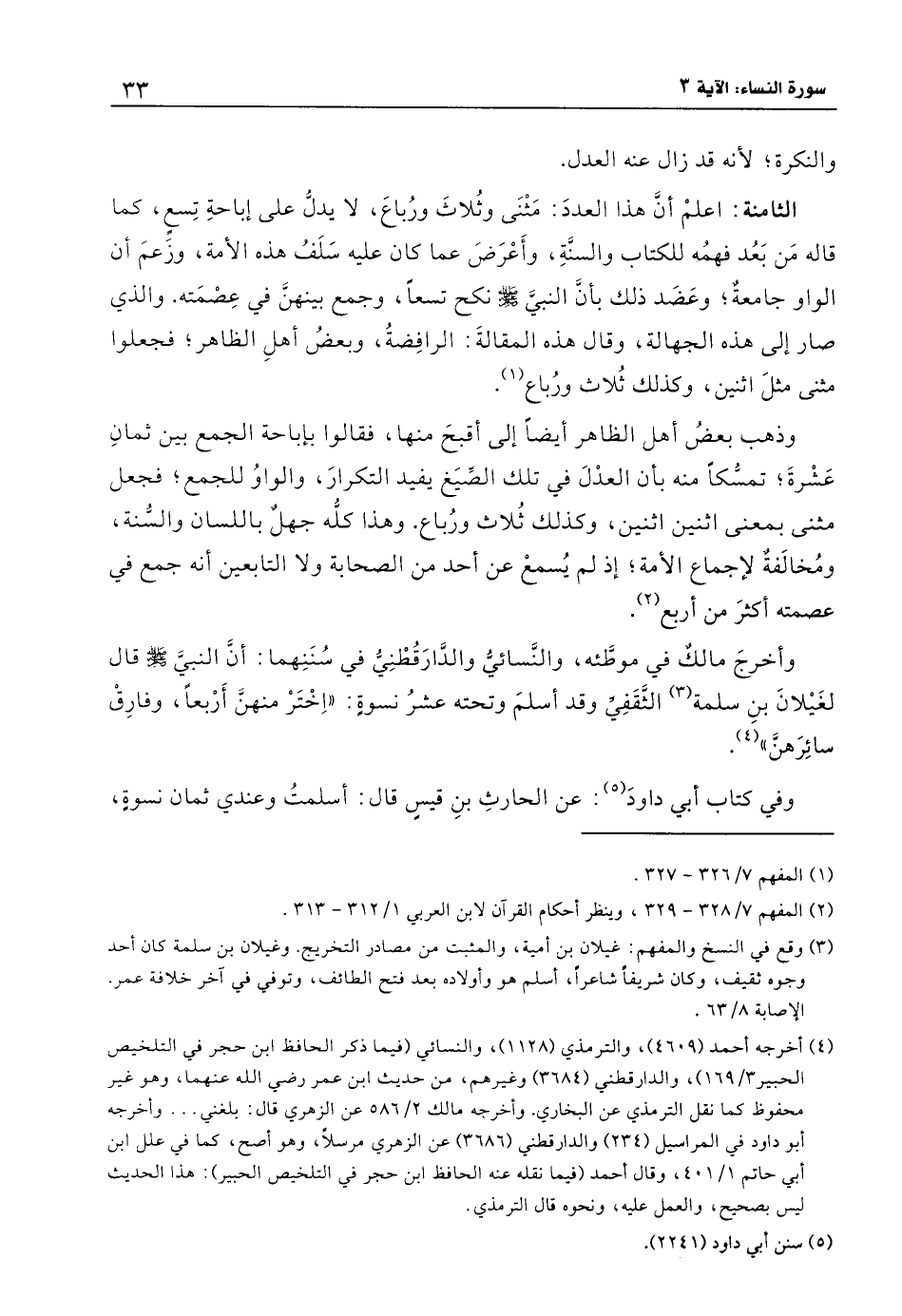 قَرَأْتُ كِتَابَ رَسُولِ اللَّهِ صَلَّى اللَّهُ عَلَيْهِ وَسَلَّمَ الَّذِي كَتَبَهُ لِعَمْرِو بْنِ حَزْمٍ حِينَ بَعَثَهُ إِلَى نَجْرَانَ وَفِي صَدْرِهِ: (هَذَا بَيَانٌ لِلنَّاسِ مِنَ اللَّهِ وَرَسُولِهِ" يَا أَيُّهَا الَّذِينَ آمَنُوا أَوْفُوا بِالْعُقُودِ" فَكَتَبَ الْآيَاتِ فِيهَا إِلَى قوله:" إِنَّ اللَّهَ سَرِيعُ الْحِسابِ"] المائدة: 4] (. وَقَالَ الزَّجَّاجُ: الْمَعْنَى أَوْفُوا بِعَقْدِ اللَّهِ عَلَيْكُمْ وَبِعَقْدِكُمْ بَعْضِكُمْ عَلَى بَعْضٍ. وَهَذَا كُلُّهُ رَاجِعٌ إِلَى الْقَوْلِ بِالْعُمُومِ وَهُوَ الصَّحِيحُ فِي الْبَابِ، قَالَ صَلَّى اللَّهُ عَلَيْهِ وَسَلَّمَ: (الْمُؤْمِنُونَ عِنْدَ شُرُوطِهِمْ) وَقَالَ: (كُلُّ شَرْطٍ لَيْسَ فِي كِتَابِ اللَّهِ فَهُوَ بَاطِلٌ وَإِنْ كَانَ مِائَةَ شَرْطٍ) فَبَيَّنَ أَنَّ الشَّرْطَ أَوِ الْعَقْدَ الَّذِي يَجِبُ الْوَفَاءُ بِهِ مَا وَافَقَ كِتَابَ اللَّهِ أَيْ دِينَ اللَّهِ، فَإِنْ ظَهَرَ فِيهَا مَا يُخَالِفُ رُدَّ، كَمَا قَالَ صَلَّى اللَّهُ عَلَيْهِ وَسَلَّمَ: (مَنْ عَمِلَ عَمَلًا لَيْسَ عَلَيْهِ أَمْرُنَا فَهُوَ رَدٌّ). ذَكَرَ ابْنُ إِسْحَاقَ قَالَ: اجْتَمَعَتْ قَبَائِلُ مِنْ قُرَيْشٍ فِي دَارِ عَبْدِ اللَّهِ بْنِ جُدْعَانَ- لِشَرَفِهِ وَنَسَبِهِ- فَتَعَاقَدُوا وَتَعَاهَدُوا عَلَى أَلَّا يَجِدُوا بِمَكَّةَ مَظْلُومًا مِنْ أَهْلِهَا أَوْ غَيْرِهِمْ إِلَّا قَامُوا مَعَهُ حَتَّى تُرَدَّ عَلَيْهِ مَظْلَمَتُهُ، فَسَمَّتْ قُرَيْشٌ ذَلِكَ الْحِلْفَ حِلْفَ الْفُضُولِ، وَهُوَ الَّذِي قَالَ فِيهِ الرَّسُولُ صَلَّى اللَّهُ عَلَيْهِ وَسَلَّمَ: (لَقَدْ شَهِدْتُ فِي دَارِ [عَبْدِ اللَّهِ] «1» بْنِ جُدْعَانَ حِلْفًا مَا أُحِبُّ أَنَّ لِي بِهِ حُمْرَ النَّعَمِ وَلَوِ ادُّعِيَ «2» بِهِ فِي الْإِسْلَامِ لَأَجَبْتُ). وَهَذَا الْحِلْفُ هُوَ الْمَعْنَى الْمُرَادُ فِي قَوْلِهِ عَلَيْهِ السَّلَامُ: (وَأَيُّمَا حِلْفٍ كَانَ فِي الْجَاهِلِيَّةِ لَمْ يَزِدْهُ الْإِسْلَامُ إِلَّا شِدَّةً) لِأَنَّهُ مُوَافِقٌ لِلشَّرْعِ إِذْ أَمَرَ بِالِانْتِصَافِ مِنَ الظَّالِمِ، فَأَمَّا مَا كَانَ مِنْ عُهُودِهِمُ الْفَاسِدَةِ وَعُقُودِهِمُ الْبَاطِلَةِ عَلَى الظُّلْمِ وَالْغَارَاتِ فَقَدْ هَدَمَهُ الْإِسْلَامُ وَالْحَمْدُ لِلَّهِ. قَالَ ابْنُ إِسْحَاقَ: تَحَامَلَ الْوَلِيدُ بْنُ عُتْبَةَ عَلَى الحسين ابن عَلِيٍّ فِي مَالٍ لَهُ- لِسُلْطَانِ الْوَلِيدِ، فَإِنَّهُ كَانَ أَمِيرًا عَلَى الْمَدِينَةِ- فَقَالَ لَهُ الْحُسَيْنُ: أَحْلِفُ بِاللَّهِ لَتُنْصِفَنِّي مِنْ حَقِّي أَوْ لَآخُذَنَّ بِسَيْفِي ثُمَّ لَأَقُومَنَّ فِي مَسْجِدِ رَسُولِ اللَّهِ صَلَّى اللَّهُ عَلَيْهِ وَسَلَّمَ ثُمَّ لَأَدْعُوَنَّ بِحِلْفِ الْفُضُولِ. قَالَ عَبْدُ اللَّهِ بْنُ الزُّبَيْرِ: وَأَنَا أَحْلِفُ بِاللَّهِ لَئِنْ دَعَانِي لَآخُذَنَّ بِسَيْفِي ثُمَّ لَأَقُومَنَّ مَعَهُ حَتَّى يَنْتَصِفَ مِنْ حَقِّهِ أَوْ نَمُوتَ جَمِيعًا، وَبَلَغَتِ الْمِسْوَرَ بْنَ مَخْرَمَةَ فَقَالَ مِثْلَ ذَلِكَ، وَبَلَغَتْ عَبْدَ الرَّحْمَنِ بْنَ عُثْمَانَ بْنِ عُبَيْدِ اللَّهِ التَّيْمِيَّ فَقَالَ مِثْلَ ذَلِكَ، فَلَمَّا بَلَغَ ذَلِكَ الْوَلِيدَ أَنْصَفَهُ. الثَّالِثَةُ- قَوْلُهُ تَعَالَى: (أُحِلَّتْ لَكُمْ بَهِيمَةُ الْأَنْعامِ) الْخِطَابُ لِكُلِّ مَنِ الْتَزَمَ الْإِيمَانَ عَلَى وَجْهِهِ وَكَمَالِهِ، وَكَانَتْ لِلْعَرَبِ سُنَنٌ فِي الْأَنْعَامِ مِنَ الْبَحِيرَةِ وَالسَّائِبَةِ والوصيلة والحام، يأتي