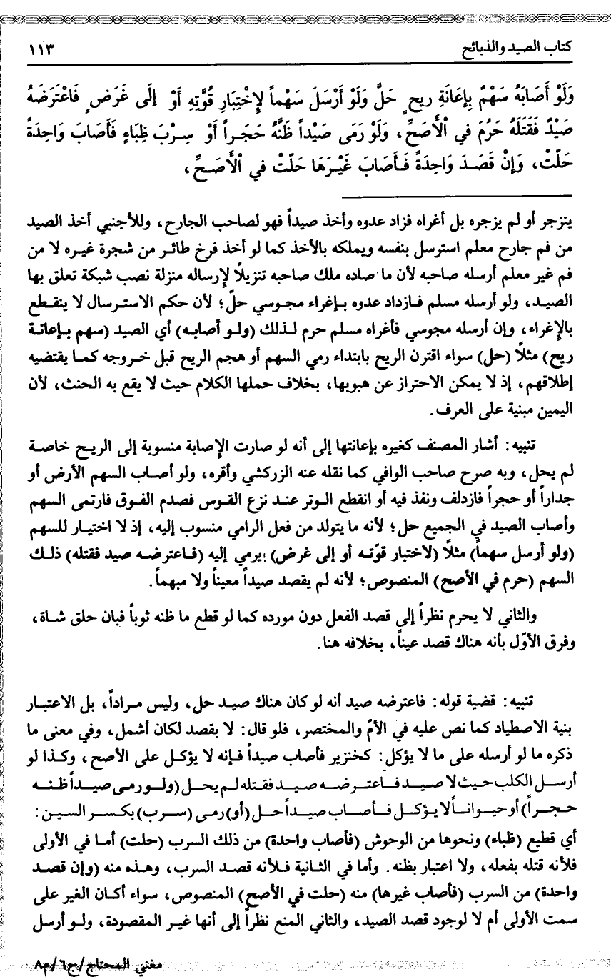 تَنْبِيهٌ: قَضِيَّةُ قَوْلِهِ: فَاعْتَرَضَهُ صَيْدٌ أَنَّهُ لَوْ كَانَ هُنَاكَ صَيْدٌ حَلَّ، وَلَيْسَ مُرَادًا، بَلْ الِاعْتِبَارُ بِنِيَّةِ الِاصْطِيَادِ كَمَا نَصَّ عَلَيْهِ فِي الْأُمِّ وَالْمُخْتَصَرِ، فَلَوْ قَالَ: لَا بِقَصْدٍ لَكَانَ أَشْمَلَ، وَفِي مَعْنَى مَا ذَكَرَهُ مَا لَوْ أَرْسَلَهُ عَلَى مَا لَا يُؤْكَلُ كَخِنْزِيرٍ فَأَصَابَ صَيْدًا فَإِنَّهُ لَا يُؤْكَلُ عَلَى الْأَصَحِّ، وَكَذَا لَوْ أَرْسَلَ الْكَلْبَ حَيْثُ لَا صَيْدَ فَاعْتَرَضَهُ صَيْدٌ فَقَتَلَهُ لَمْ يَحِلَّ (وَلَوْ رَمَى صَيْدًا ظَنَّهُ حَجَرًا) أَوْ حَيَوَانًا لَا يُؤْكَلُ فَأَصَابَ صَيْدًا حَلَّ (أَوْ) رَمَى (سِرْبَ) بِكَسْرِ السِّينِ: أَيْ قَطِيعَ (ظِبَاءٍ) وَنَحْوِهَا مِنْ الْوُحُوشِ (فَأَصَابَ وَاحِدَةً) مِنْ ذَلِكَ السِّرْبِ (حَلَّتْ) أَمَّا فِي الْأُولَى فَلِأَنَّهُ قَتَلَهُ بِفِعْلِهِ، وَلَا اعْتِبَارَ بِظَنِّهِ. وَأَمَّا فِي الثَّانِيَةِ فَلِأَنَّهُ قَصَدَ السِّرْبَ، وَهَذِهِ مِنْهُ (وَإِنْ قَصَدَ وَاحِدَةً) مِنْ السِّرْبِ (فَأَصَابَ غَيْرَهَا) مِنْهُ (حَلَّتْ فِي الْأَصَحِّ) الْمَنْصُوصِ، سَوَاءٌ أَكَانَ الْغَيْرُ عَلَى سَمْتِ الْأُولَى أَمْ لَا لِوُجُودِ قَصْدِ الصَّيْدِ، وَالثَّانِي الْمَنْعُ نَظَرًا إلَى أَنَّهَا غَيْرُ الْمَقْصُودَةِ، وَلَوْ أَرْسَلَ