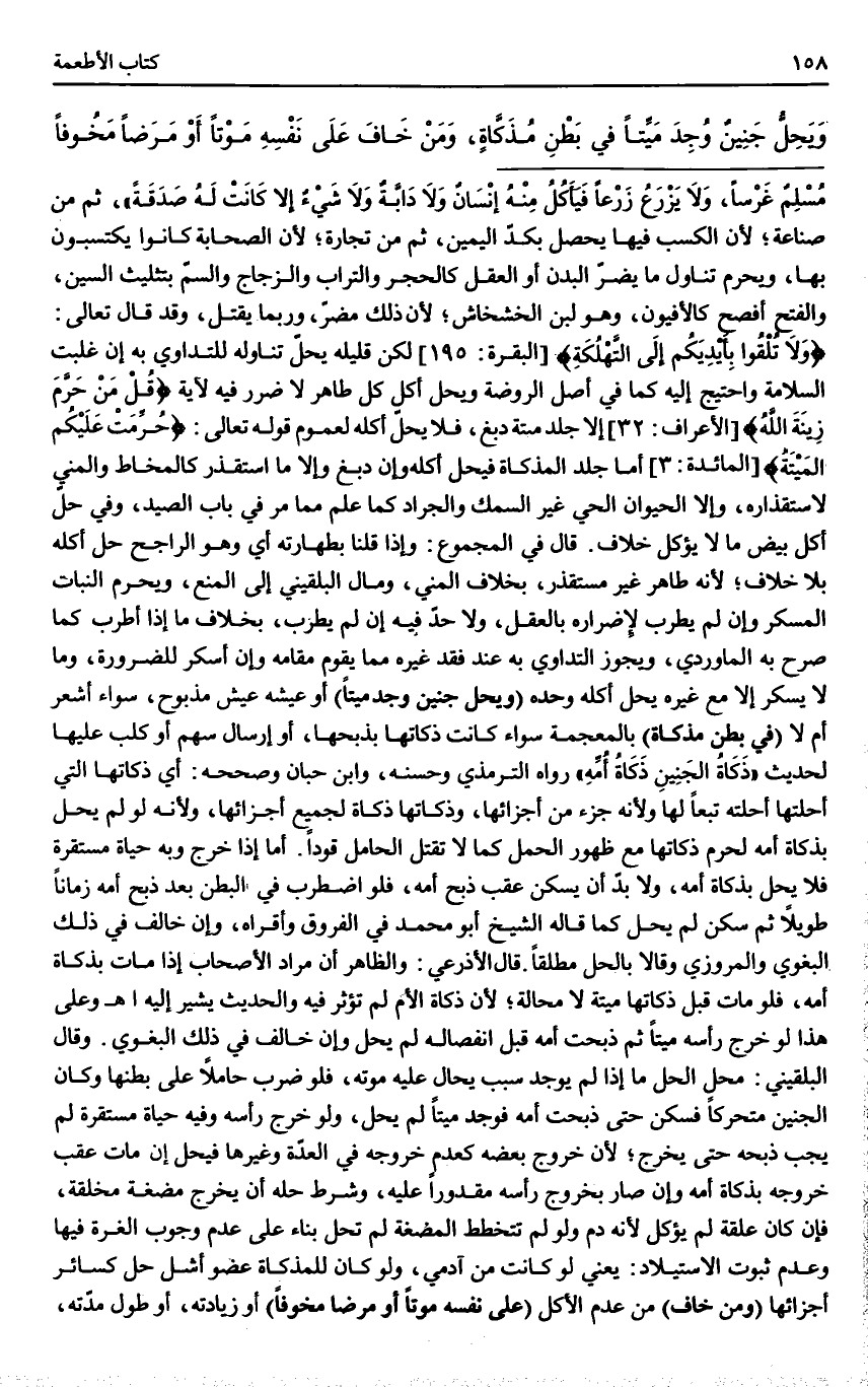 وَعَلَى هَذَا لَوْ خَرَجَ رَأْسُهُ مَيِّتًا ثُمَّ ذُبِحَتْ أُمُّهُ قَبْلَ انْفِصَالِهِ لَمْ يَحِلَّ وَإِنْ خَالَفَ فِي ذَلِكَ الْبَغَوِيّ وَقَالَ الْبُلْقِينِيُّ مَحِلُّ الْحِلِّ مَا إذَا لَمْ يُوجَدْ سَبَبٌ يُحَالُ عَلَيْهِ مَوْتُهُ، فَلَوْ ضَرَبَ حَامِلًا عَلَى بَطْنِهَا وَكَانَ الْجَنِينُ مُتَحَرِّكًا فَسَكَنَ حَتَّى ذُبِحَتْ أُمُّهُ فَوُجِدَ مَيِّتًا لَمْ يَحِلَّ، وَلَوْ خَرَجَ رَأْسُهُ وَفِيهِ حَيَاةٌ مُسْتَقِرَّةٌ لَمْ يَجِبْ ذَبْحُهُ حَتَّى يَخْرُجَ؛ لِأَنَّ خُرُوجَ بَعْضِهِ كَعَدَمِ خُرُوجِهِ فِي الْعُدَّةِ وَغَيْرِهَا فَيَحِلُّ إنْ مَاتَ عَقِبَ خُرُوجِهِ بِذَكَاةِ أُمِّهِ وَإِنْ صَارَ بِخُرُوجِ رَأْسِهِ مَقْدُورًا عَلَيْهِ، وَشَرْطُ حِلِّهِ أَنْ يَخْرُجَ مُضْغَةً مُخَلَّقَةً، فَإِنْ كَانَ عَلَقَةً لَمْ يُؤْكَلْ لِأَنَّهُ دَمٌ وَلَوْ لَمْ تَتَخَطَّطْ الْمُضْغَةُ لَمْ تَحِلَّ بِنَاءً عَلَى عَدَمِ وُجُوبِ الْغُرَّةِ فِيهَا وَعَدَمِ ثُبُوتِ الِاسْتِيلَادِ يَعْنِي لَوْ كَانَتْ مِنْ آدَمِيٍّ، وَلَوْ كَانَ لِلْمُذَكَّاةِ عُضْوٌ أَشَلُّ حَلَّ كَسَائِرِ أَجْزَائِهَا.