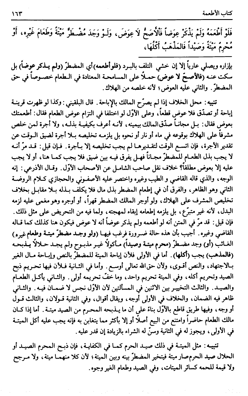 تَنْبِيهٌ مِثْلُ الْمَيْتَةِ فِي ذَلِكَ صَيْدُ الْحَرَمِ كَمَا فِي الْكِفَايَةِ، فَإِنْ ذَبَحَ الْمُحْرِمُ الصَّيْدَ أَوْ الْحَلَالُ صَيْدَ الْحَرَمِ صَارَ مَيْتَةً فَيَتَخَيَّرُ الْمُضْطَرُّ بَيْنَهُ وَبَيْنَ الْمَيْتَةِ؛ لِأَنَّ كُلًّا مِنْهُمَا مَيْتَةٌ، وَلَا مُرَجِّحَ وَلَا قِيمَةَ لِلَحْمِهِ كَسَائِرِ الْمَيْتَاتِ، وَفِي الصَّيْدِ وَطَعَامِ الْغَيْرِ وُجُوهٌ