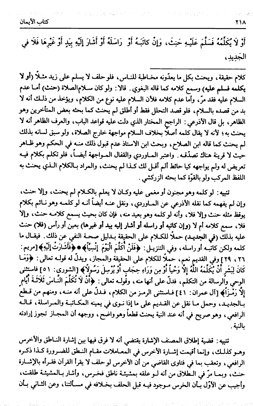 ـــــــــــــــــــــــــــــQكَلَامٌ حَقِيقَةً، وَيَحْنَثُ بِكُلِّ مَا يَعُدُّونَهُ مُخَاطَبَةً لِلنَّاسِ.