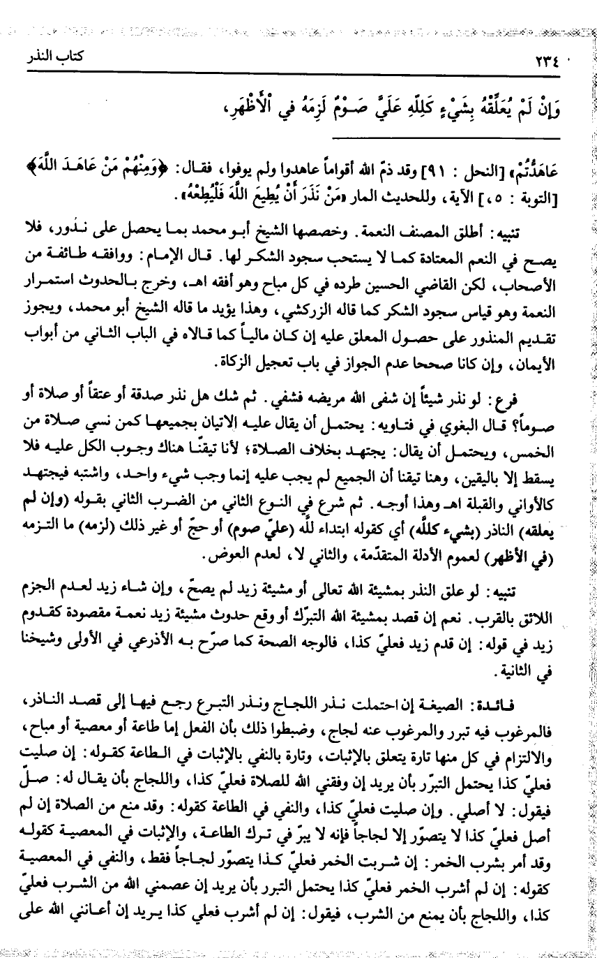 ـــــــــــــــــــــــــــــQوَقَدْ ذَمَّ اللَّهُ أَقْوَامًا عَاهَدُوا وَلَمْ يُوفُوا، فَقَالَ: {وَمِنْهُمْ مَنْ عَاهَدَ اللَّهَ} [التوبة: 75] الْآيَةَ، وَلِلْحَدِيثِ الْمَارِّ «مَنْ نَذَرَ أَنْ يُطِيعَ اللَّهَ فَلْيُطِعْهُ» .