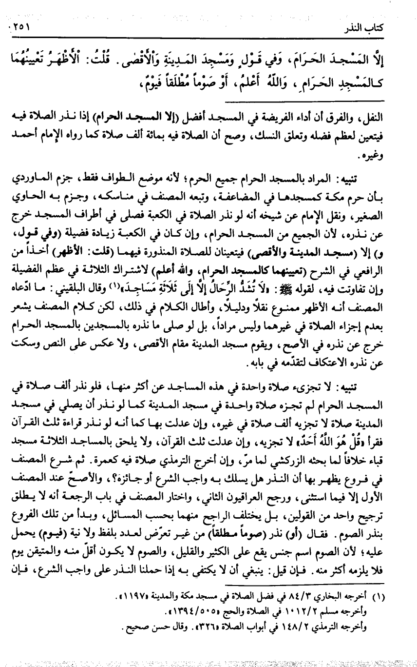 إلَّا الْمَسْجِدَ الْحَرَامَ، وَفِي قَوْلٍ: " وَمَسْجِدَ الْمَدِينَةِ وَالْأَقْصَى ". قُلْت: الْأَظْهَرُ تَعْيِينُهُمَا كَالْمَسْجِدِ الْحَرَامِ، وَاَللَّهُ أَعْلَمُ.