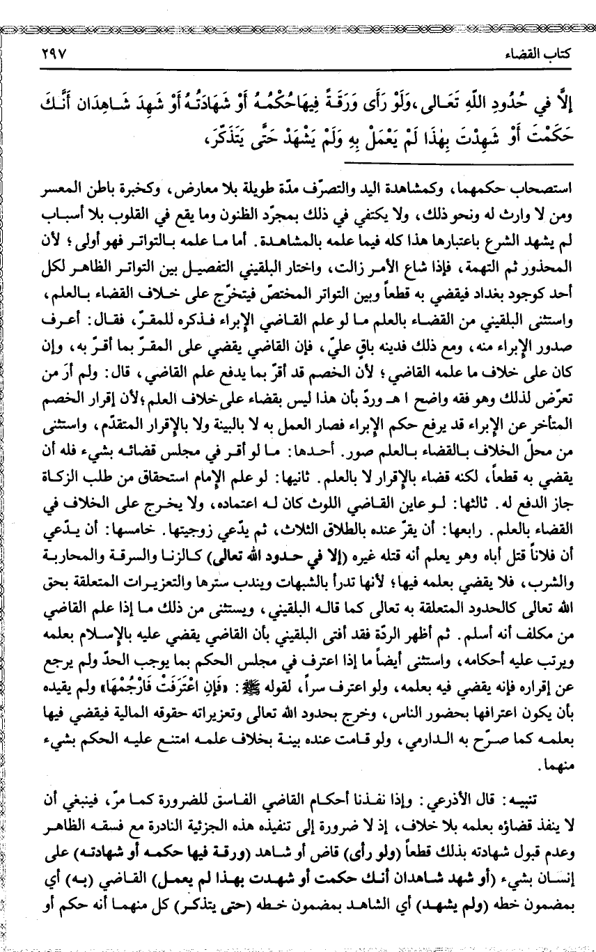 تَنْبِيهٌ قَالَ الْأَذْرَعِيُّ: وَإِذَا نَفَّذْنَا أَحْكَامَ الْقَاضِي الْفَاسِقِ لِلضَّرُورَةِ كَمَا مَرَّ، فَيَنْبَغِي أَنْ لَا يَنْفُذَ قَضَاؤُهُ بِعِلْمِهِ بِلَا خِلَافٍ، إذْ لَا ضَرُورَةَ إلَى تَنْفِيذِهِ هَذِهِ الْجُزْئِيَّةَ النَّادِرَةَ مَعَ فِسْقِهِ الظَّاهِرِ وَعَدَمِ قَبُولِ شَهَادَتِهِ بِذَلِكَ قَطْعًا.