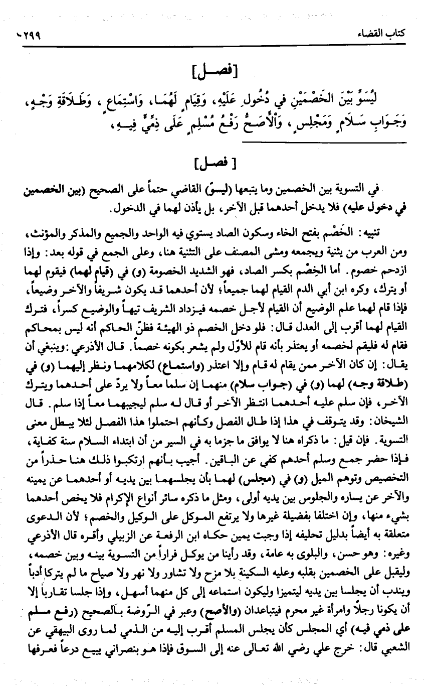 ـــــــــــــــــــــــــــــQ [فَصَلِّ التَّسْوِيَةِ بَيْنَ الْخَصْمَيْنِ]