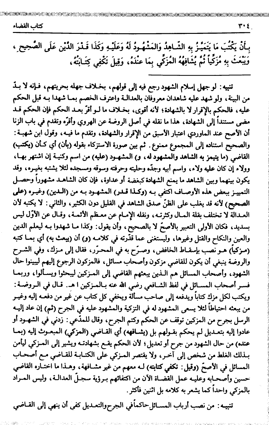 تَنْبِيهٌ مَنْ نَصَبَ أَرْبَابَ الْمَسَائِلِ حَاكِمًا فِي الْجَرْحِ وَالتَّعْدِيلِ كَفَى أَنْ يُنْهِيَ إلَى الْقَاضِي