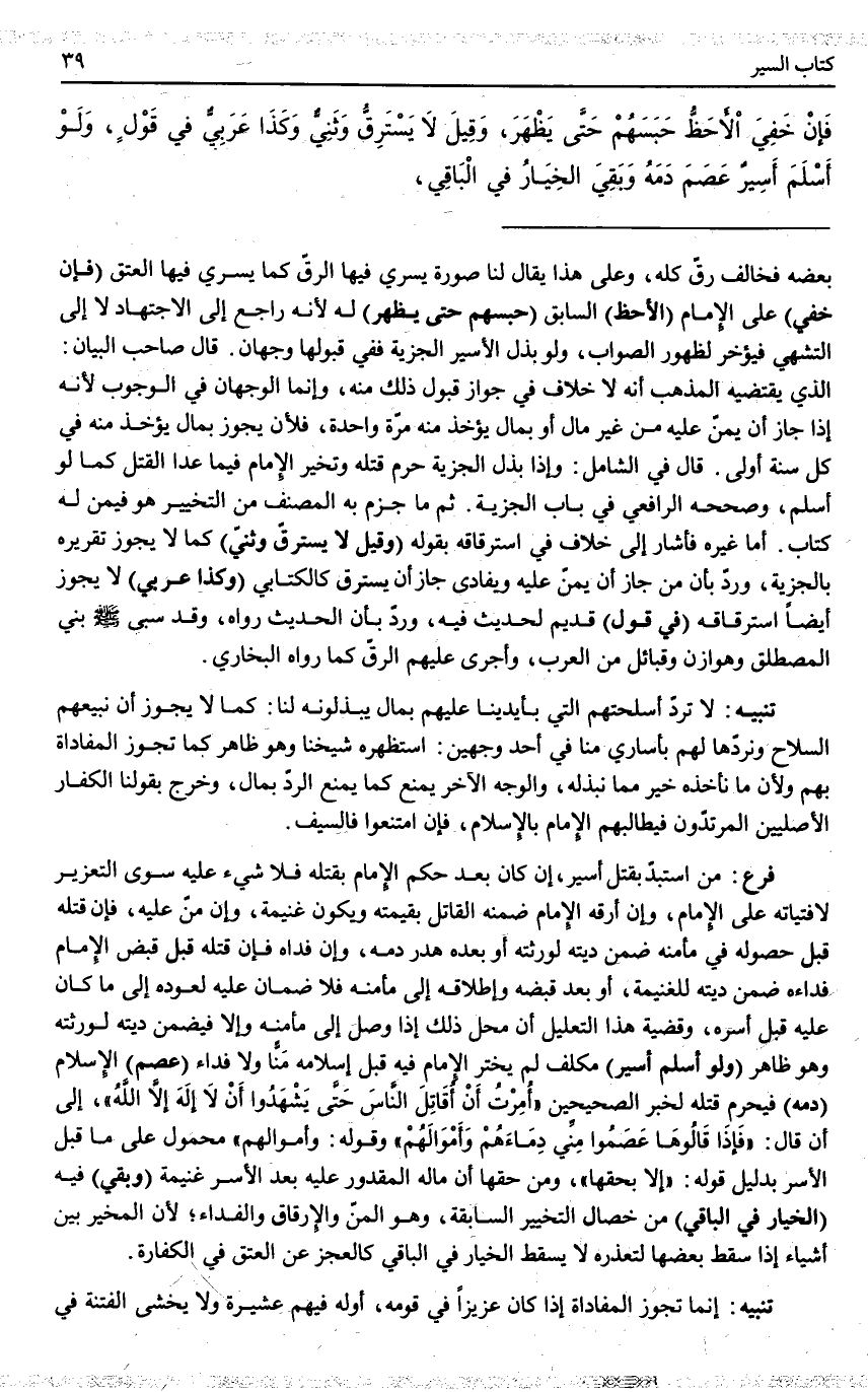 ـــــــــــــــــــــــــــــQبَعْضِهِ فَخَالَفَ رِقَّ كُلِّهِ، وَعَلَى هَذَا يُقَالُ لَنَا صُورَةٌ يَسْرِي فِيهَا الرِّقُّ كَمَا يَسْرِي فِيهَا الْعِتْقُ (فَإِنْ خَفِيَ) عَلَى الْإِمَامِ (الْأَحَظُّ) السَّابِقُ (حَبَسَهُمْ حَتَّى يَظْهَرَ) لَهُ؛ لِأَنَّهُ رَاجِعٌ إلَى الِاجْتِهَادِ لَا إلَى التَّشَهِّي فَيُؤَخَّرُ لِظُهُورِ الصَّوَابِ.