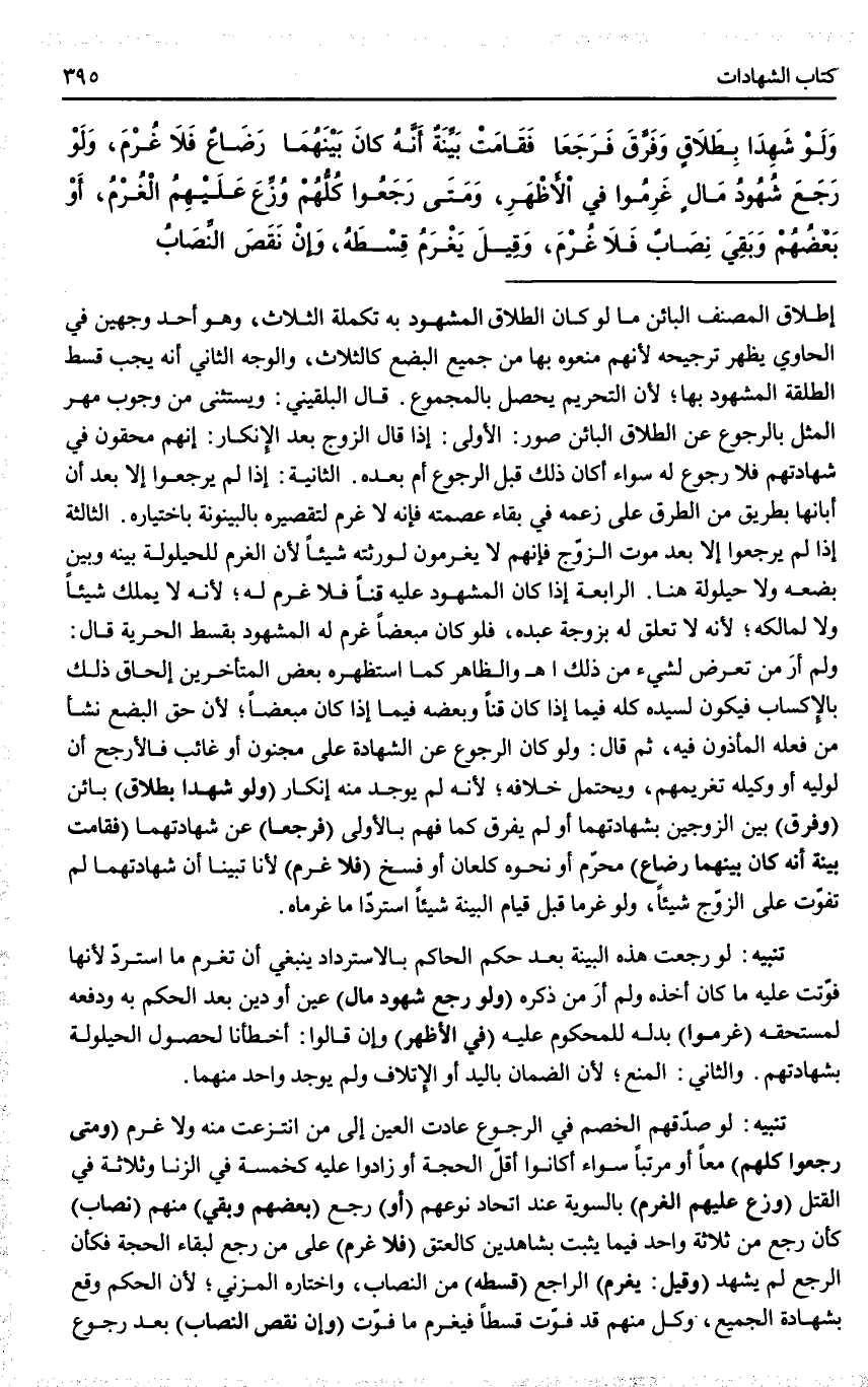 ـــــــــــــــــــــــــــــQإطْلَاقُ الْمُصَنِّفِ الْبَائِنَ مَا لَوْ كَانَ الطَّلَاقُ الْمَشْهُودُ بِهِ تَكْمِلَةُ الثَّلَاثِ، وَهُوَ أَحَدُ وَجْهَيْنِ فِي الْحَاوِي يَظْهَرُ تَرْجِيحُهُ؛ لِأَنَّهُمْ مَنَعُوهُ بِهَا مِنْ جَمِيعِ الْبُضْعِ كَالثَّلَاثِ، وَالْوَجْهُ الثَّانِي أَنَّهُ يَجِبُ قَسْطُ الطَّلْقَةِ الْمَشْهُودِ بِهَا؛ لِأَنَّ التَّحْرِيمَ يَحْصُلُ بِالْمَجْمُوعِ. قَالَ الْبُلْقِينِيُّ: وَيُسْتَثْنَى مِنْ وُجُوبِ مَهْرِ الْمِثْلِ بِالرُّجُوعِ عَنْ الطَّلَاقِ الْبَائِنِ صُوَرٌ: الْأُولَى: إذَا قَالَ الزَّوْجُ بَعْدَ الْإِنْكَارِ: إنَّهُمْ مُحِقُّونَ فِي شَهَادَتِهِمْ فَلَا رُجُوعَ لَهُ سَوَاءٌ أَكَانَ ذَلِكَ قَبْلَ الرُّجُوعِ أَمْ بَعْدَهُ. الثَّانِيَةُ: إذَا لَمْ يَرْجِعُوا إلَّا بَعْدَ أَنْ أَبَانَهَا بِطَرِيقٍ مِنْ الطُّرُقِ عَلَى زَعْمِهِ فِي بَقَاءِ عِصْمَتِهِ فَإِنَّهُ لَا غُرْمَ لِتَقْصِيرِهِ بِالْبَيْنُونَةِ بِاخْتِيَارِهِ. الثَّالِثَةُ إذَا لَمْ يَرْجِعُوا إلَّا بَعْدَ مَوْتِ الزَّوْجِ فَإِنَّهُمْ لَا يَغْرَمُونَ لِوَرَثَتِهِ شَيْئًا؛ لِأَنَّ الْغُرْمَ لِلْحَيْلُولَةِ بَيْنَهُ وَبَيْنَ بُضْعِهِ وَلَا حَيْلُولَةَ هُنَا. الرَّابِعَةُ إذَا كَانَ الْمَشْهُودُ عَلَيْهِ قِنًّا فَلَا غُرْمَ لَهُ؛ لِأَنَّهُ لَا يَمْلِكُ شَيْئًا وَلَا لِمَالِكِهِ؛ لِأَنَّهُ لَا تَعَلُّقَ لَهُ بِزَوْجَةِ عَبْدِهِ، فَلَوْ كَانَ مُبَعَّضًا غَرِمَ لَهُ الْمَشْهُودُ بِقِسْطِ الْحُرِّيَّةِ قَالَ: وَلَمْ أَرَ مَنْ تَعَرَّضَ لِشَيْءٍ مِنْ ذَلِكَ اهـ.