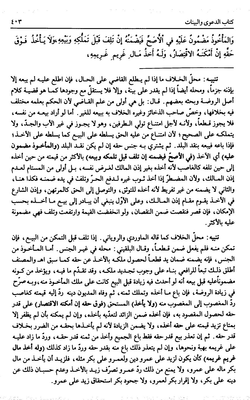 ـــــــــــــــــــــــــــــQتَنْبِيهٌ: مَحَلُّ الْخِلَافِ مَا إذَا لَمْ يَطَّلِعْ الْقَاضِي عَلَى الْحَالِ، فَإِنْ اطَّلَعَ عَلَيْهِ لَمْ يَبِعْهُ إلَّا بِإِذْنِهِ جَزْمًا، وَمَحَلُّهُ أَيْضًا إذَا لَمْ يَقْدِرْ عَلَى بَيِّنَةٍ، وَإِلَّا فَلَا يَسْتَقِلُّ مَعَ وُجُودِهَا كَمَا هُوَ قَضِيَّةُ كَلَامِ أَصْلِ الرَّوْضَةِ وَبَحَثَهُ بَعْضُهُمْ. قَالَ: بَلْ هِيَ أَوْلَى مِنْ عِلْمِ الْقَاضِي؛ لِأَنَّ الْحُكْمَ بِعِلْمِهِ مُخْتَلَفٌ فِيهِ بِخِلَافِهَا، وَخَصَّ صَاحِبُ الذَّخَائِرِ وَغَيْرُهُ الْخِلَافَ بِهِ بِبَيْعِهِ لِلْغَيْرِ. أَمَّا لَوْ أَرَادَ بَيْعَهُ مِنْ نَفْسِهِ، فَلَا يَجُوزُ قَطْعًا، وَلِأَنَّهُ لِأَجْلِ امْتِنَاعِ تَوَلِّي الطَّرَفَيْنِ، وَهُوَ لَا يَجُوزُ فِي غَيْرِ الْأَبِ وَالْجَدِّ، وَلَا يَتَمَلَّكُهُ عَلَى الصَّحِيحِ؛ لِأَنَّ امْتِنَاعَ مَنْ عَلَيْهِ الْحَقُّ يُسَلِّطُهُ عَلَى الْبَيْعِ كَمَا يُسَلِّطُهُ عَلَى الْأَخْذِ؛ فَإِذَا بَاعَهُ فَيَبِعْهُ بِنَقْدِ الْبَلَدِ. ثُمَّ يَشْتَرِي بِهِ جِنْسَ حَقِّهِ إنْ لَمْ يَكُنْ نَقْدُ الْبَلَدِ (وَالْمَأْخُوذُ مَضْمُونٌ عَلَيْهِ) أَيْ الْآخِذِ (فِي الْأَصَحِّ فَيَضْمَنُهُ إنْ تَلِفَ قَبْلَ تَمَلُّكِهِ وَبَيْعِهِ) بِالْأَكْثَرِ مِنْ قِيمَتِهِ مِنْ حِينِ أَخْذِهِ إلَى حِينِ تَلَفِهِ كَالْغَاصِبِ؛ لِأَنَّهُ أَخَذَهُ بِغَيْرِ إذْنِ الْمَالِكِ لِغَرَضِ نَفْسِهِ، بَلْ أَوْلَى مِنْ الْمُسْتَامِ لِعَدَمِ إذْنِ الْمَالِكِ، وَلِأَنَّ الْمُضْطَرَّ إذَا أَخَذَ ثَوْبَ غَيْرِهِ لِدَفْعِ الْحَرِّ وَتَلِفَتْ فِي يَدِهِ ضَمِنَهُ فَكَذَا هُنَا، وَالثَّانِي لَا يَضْمَنُهُ مِنْ غَيْرِ تَفْرِيطٍ؛ لِأَنَّهُ أَخَذَهُ لِلتَّوَثُّقِ، وَالتَّوَصُّلُ إلَى الْحَقِّ كَالْمُرْتَهِنِ، وَإِذْنُ الشَّارِعِ فِي الْأَخْذِ يَقُومُ مَقَامَ إذْنِ الْمَالِكِ، وَعَلَى الْأَوَّلِ يَنْبَغِي أَنْ يُبَادِرَ إلَى بَيْعِ مَا أَخَذَهُ بِحَسَبِ الْإِمْكَانِ، فَإِنْ قَصَّرَ فَنَقَصَتْ ضَمِنَ النُّقْصَانَ، وَلَوْ انْخَفَضَتْ الْقِيمَةُ وَارْتَفَعَتْ وَتَلِفَ فَهِيَ مَضْمُونَةٌ عَلَيْهِ بِالْأَكْثَرِ.