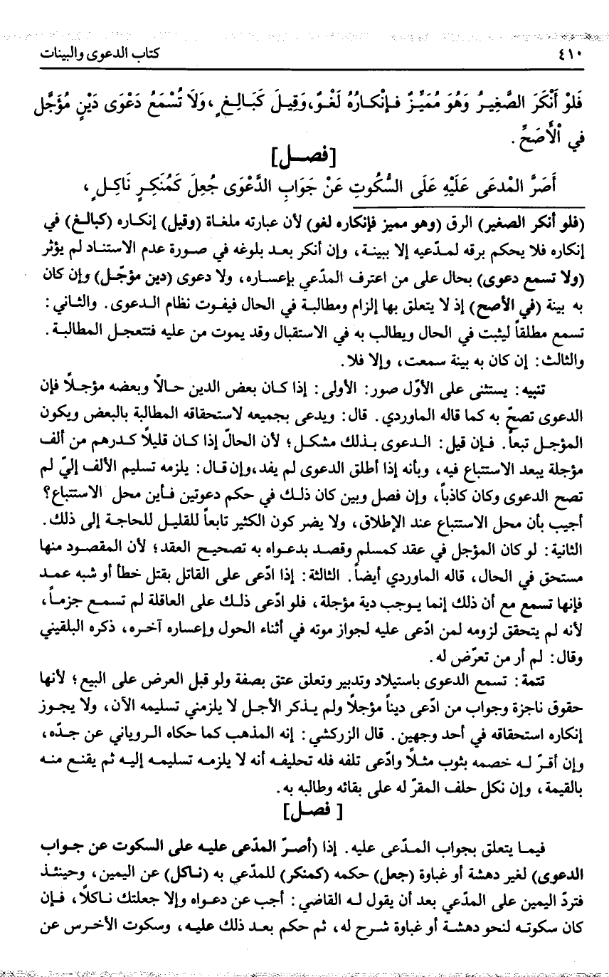 [فَصْلٌ] أَصَرَّ الْمُدَّعَى عَلَيْهِ عَلَى السُّكُوتِ عَنْ جَوَابِ الدَّعْوَى جُعِلَ كَمُنْكِرٍ نَاكِلٍ،