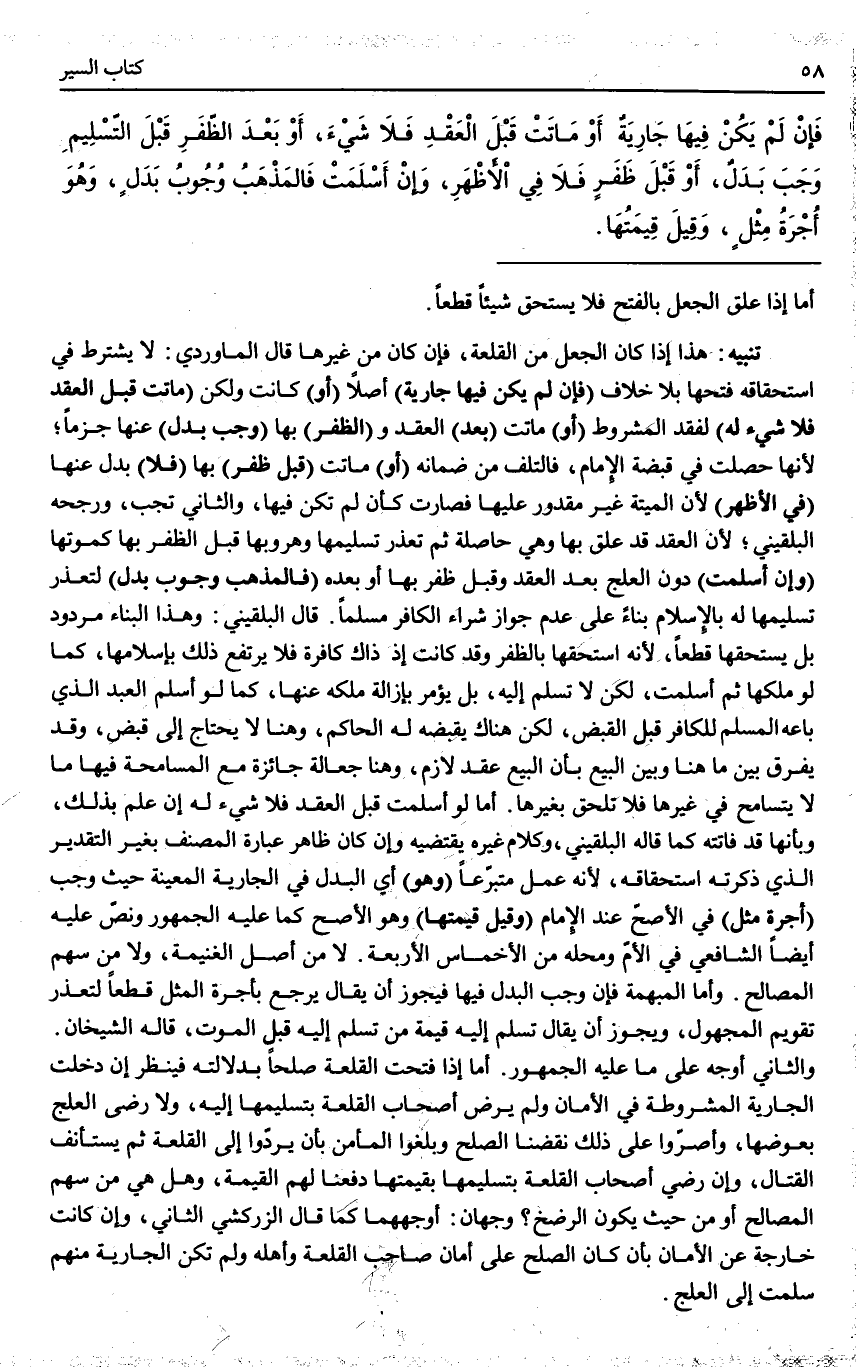تَنْبِيهٌ: هَذَا إذَا كَانَ الْجُعْلُ مِنْ الْقَلْعَةِ، فَإِنْ كَانَ مِنْ غَيْرِهَا قَالَ: الْمَاوَرْدِيُّ: لَا يُشْتَرَطُ فِي اسْتِحْقَاقِهِ فَتْحُهَا بِلَا خِلَافٍ (فَإِنْ لَمْ يَكُنْ فِيهَا جَارِيَةٌ) أَصْلًا (أَوْ) كَانَتْ وَلَكِنْ (مَاتَتْ قَبْلَ الْعَقْدِ فَلَا شَيْءَ لَهُ) لِفَقْدِ الْمَشْرُوطِ (أَوْ) مَاتَتْ (بَعْدَ) الْعَقْدِ وَ (الظَّفَرِ) بِهَا (وَجَبَ بَدَلٌ) عَنْهَا جَزْمًا؛ لِأَنَّهَا حَصَلَتْ فِي قَبْضَةِ الْإِمَامِ، فَالتَّلَفُ مِنْ ضَمَانِهِ (أَوْ) مَاتَتْ (قَبْلَ ظَفَرٍ) بِهَا (فَلَا) بَدَلَ عَنْهَا (فِي الْأَظْهَرِ) ؛ لِأَنَّ الْمَيِّتَةَ غَيْرُ مَقْدُورٍ عَلَيْهَا فَصَارَتْ كَأَنْ لَمْ تَكُنْ فِيهَا، وَالثَّانِي تَجِبُ، وَرَجَّحَهُ الْبُلْقِينِيُّ؛ لِأَنَّ الْعَقْدَ قَدْ عُلِّقَ بِهَا وَهِيَ حَاصِلَةٌ ثُمَّ تَعَذَّرَ تَسْلِيمُهَا، وَهُرُوبُهَا قَبْلَ الظَّفَرِ بِهَا كَمَوْتِهَا (وَإِنْ أَسْلَمَتْ) دُونَ الْعِلْجِ بَعْدَ الْعَقْدِ وَقَبْلَ ظَفَرٍ بِهَا أَوْ بَعْدَهُ (فَالْمَذْهَبُ وُجُوبُ بَدَلٍ) لِتَعَذُّرِ تَسْلِيمِهَا لَهُ بِالْإِسْلَامِ بِنَاءً عَلَى عَدَمِ جَوَازِ شِرَاءِ الْكَافِرِ مُسْلِمًا. قَالَ: الْبُلْقِينِيُّ: وَهَذَا الْبِنَاءُ مَرْدُودٌ بَلْ يَسْتَحِقُّهَا قَطْعًا؛ لِأَنَّهُ اسْتَحَقَّهَا بِالظَّفَرِ وَقَدْ كَانَتْ إذْ ذَاكَ كَافِرَةً فَلَا يَرْتَفِعُ ذَلِكَ بِإِسْلَامِهَا، كَمَا لَوْ مَلَكَهَا ثُمَّ أَسْلَمَتْ، لَكِنْ لَا تُسَلَّمُ إلَيْهِ، بَلْ يُؤْمَرُ بِإِزَالَةِ مِلْكِهِ عَنْهَا، كَمَا لَوْ أَسْلَمَ الْعَبْدُ الَّذِي بَاعَهُ الْمُسْلِمُ لِلْكَافِرِ قَبْلَ الْقَبْضِ، لَكِنْ هُنَاكَ يَقْبِضُهُ لَهُ الْحَاكِمُ، وَهُنَا لَا يَحْتَاجُ إلَى قَبْضٍ، وَقَدْ يُفَرَّقُ بَيْنَ مَا هُنَا وَبَيْنَ الْبَيْعِ بِأَنَّ الْبَيْعَ عَقْدٌ لَازِمٌ، وَهُنَا جَعَالَةٌ جَائِزَةٌ مَعَ الْمُسَامَحَةِ فِيهَا مَا لَا يُتَسَامَحُ فِي غَيْرِهَا فَلَا تَلْحَقُ بِغَيْرِهَا. أَمَّا لَوْ أَسْلَمَتْ قَبْلَ الْعَقْدِ فَلَا شَيْءَ لَهُ إنْ عَلِمَ بِذَلِكَ، وَبِأَنَّهَا قَدْ فَاتَتْهُ كَمَا قَالَهُ الْبُلْقِينِيُّ، وَكَلَامُ غَيْرِهِ يَقْتَضِيه، وَإِنْ كَانَ ظَاهِرُ عِبَارَةِ الْمُصَنِّف بِغَيْرِ التَّقْدِيرِ الَّذِي ذَكَرْتُهُ اسْتِحْقَاقَهُ؛ لِأَنَّهُ عَمِلَ مُتَبَرِّعًا (وَهُوَ) أَيْ الْبَدَلُ فِي الْجَارِيَةِ الْمُعَيَّنَةِ حَيْثُ وَجَبَ (أُجْرَةُ مِثْلٍ) فِي الْأَصَحِّ عِنْدَ الْإِمَامِ (وَقِيلَ قِيمَتُهَا) وَهُوَ الْأَصَحُّ كَمَا عَلَيْهِ الْجُمْهُورُ وَنَصَّ عَلَيْهِ أَيْضًا الشَّافِعِيُّ فِي الْأُمِّ وَمَحِلُّهُ مِنْ الْأَخْمَاسِ الْأَرْبَعَةِ لَا مِنْ أَصْلِ الْغَنِيمَةِ، وَلَا مِنْ سَهْمِ الْمَصَالِحِ. وَأَمَّا الْمُبْهَمَةُ فَإِنْ وَجَبَ الْبَدَلُ فِيهَا فَيَجُوزُ أَنْ يُقَالَ يَرْجِعُ بِأُجْرَةِ الْمِثْلِ قَطْعًا لِتَعَذُّرِ تَقْوِيمِ الْمَجْهُولِ، وَيَجُوزُ أَنْ يُقَالَ: تُسَلَّمُ إلَيْهِ قِيمَةُ مَنْ تُسَلَّمُ إلَيْهِ قَبْلَ الْمَوْتِ، قَالَهُ الشَّيْخَانِ. وَالثَّانِي أَوْجَهُ عَلَى مَا عَلَيْهِ الْجُمْهُورُ. أَمَّا إذَا فُتِحَتْ الْقَلْعَةُ صُلْحًا بِدَلَالَتِهِ فَيُنْظَرُ إنْ دَخَلَتْ الْجَارِيَةُ الْمَشْرُوطَةُ فِي الْأَمَانِ وَلَمْ يَرْضَ أَصْحَابُ الْقَلْعَةِ بِتَسْلِيمِهَا إلَيْهِ، وَلَا رَضِيَ الْعِلْجُ بِعِوَضِهَا، وَأَصَرُّوا عَلَى ذَلِكَ نَقَضْنَا الصُّلْحَ وَبُلِّغُوا الْمَأْمَنَ بِأَنْ يُرَدُّوا إلَى الْقَلْعَةِ ثُمَّ يُسْتَأْنَفُ الْقِتَالُ، وَإِنْ رَضِيَ أَصْحَابُ الْقَلْعَةِ بِتَسْلِيمِهَا بِقِيمَتِهَا دَفَعْنَا لَهُمْ الْقِيمَةَ، وَهَلْ هِيَ مِنْ سَهْمِ الْمَصَالِحِ أَوْ مِنْ حَيْثُ يَكُونُ الرَّضْخُ؟ وَجْهَانِ: أَو