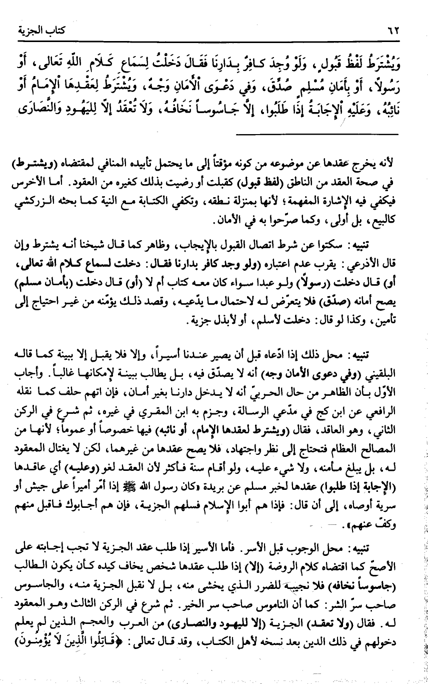 تَنْبِيهٌ: مَحَلُّ الْوُجُوبِ قَبْلَ الْأَسْرِ. فَأَمَّا الْأَسِيرُ إذَا طَلَبَ عَقْدَ الْجِزْيَةِ لَا تَجِبُ إجَابَتُهُ عَلَى الْأَصَحِّ كَمَا اقْتَضَاهُ كَلَامُ الرَّوْضَةِ (إلَّا) إذَا طَلَبَ عَقْدَهَا شَخْصٌ يُخَافُ كَيْدُهُ كَأَنْ يَكُونَ الطَّالِبُ (جَاسُوسًا نَخَافُهُ) فَلَا نُجِيبُهُ لِلضَّرَرِ الَّذِي يُخْشَى مِنْهُ، بَلْ لَا نَقْبَلُ الْجِزْيَةَ مِنْهُ، وَالْجَاسُوسُ صَاحِبُ سِرِّ الشَّرِّ: كَمَا أَنَّ النَّامُوسَ صَاحِبُ سِرِّ الْخَيْرِ. .