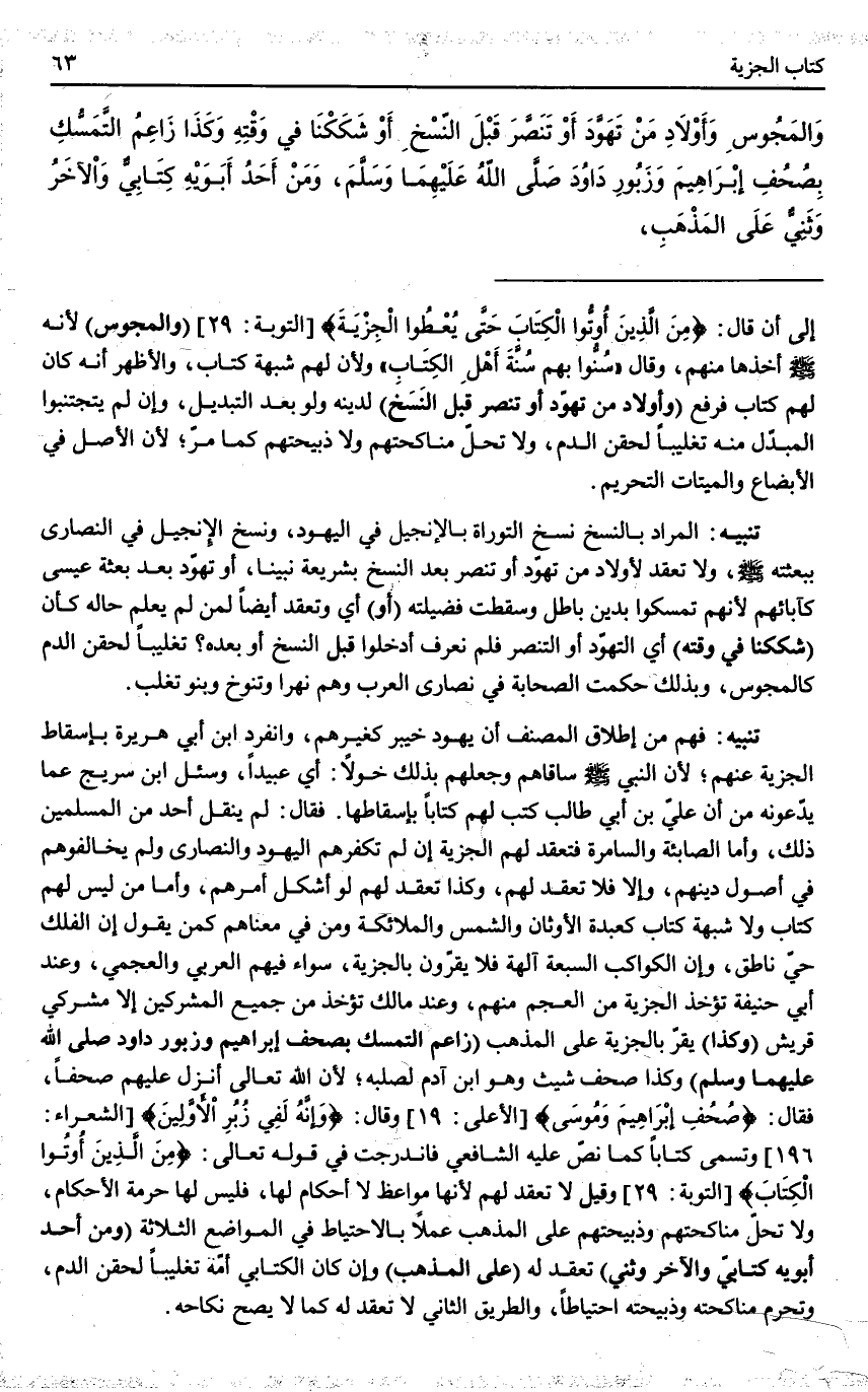 ـــــــــــــــــــــــــــــQإلَى أَنْ قَالَ: {مِنَ الَّذِينَ أُوتُوا الْكِتَابَ حَتَّى يُعْطُوا الْجِزْيَةَ} [التوبة: 29] (وَالْمَجُوس) «؛ لِأَنَّهُ - صَلَّى اللَّهُ عَلَيْهِ وَسَلَّمَ - أَخَذَهَا مِنْهُمْ، وَقَالَ سُنُّوا بِهِمْ سُنَّةَ أَهْلِ الْكِتَابِ» وَلِأَنَّ لَهُمْ شُبْهَةَ كِتَابِ وَالْأَظْهَرُ أَنَّهُ كَانَ لَهُمْ كِتَابٌ فَرُفِعَ (وَأَوْلَادِ مَنْ تَهَوَّدَ أَوْ تَنَصَّرَ قَبْلَ النَّسْخِ) لِدِينِهِ وَلَوْ بَعْدَ التَّبْدِيلِ، وَإِنْ لَمْ يَجْتَنِبُوا الْمُبْدَلَ مِنْهُ تَغْلِيبًا لِحَقْنِ الدَّمِ، وَلَا تَحِلُّ مُنَاكَحَتُهُمْ وَلَا ذَبِيحَتُهُمْ كَمَا مَرَّ؛ لِأَنَّ الْأَصْلَ فِي الْأَبْضَاعِ وَالْمَيْتَاتِ التَّحْرِيمُ. تَنْبِيهٌ: الْمُرَادُ بِالنَّسْخِ نَسْخُ التَّوْرَاةِ بِالْإِنْجِيلِ فِي الْيَهُودِ، وَنَسْخُ الْإِنْجِيلِ فِي النَّصَارَى بِبَعْثَتِهِ - صَلَّى اللَّهُ عَلَيْهِ وَسَلَّمَ - وَلَا تُعْقَدُ لِأَوْلَادِ مَنْ تَهَوَّدَ أَوْ تَنَصَّرَ بَعْدَ النَّسْخِ بِشَرِيعَةِ نَبِيِّنَا، أَوْ تَهَوَّدَ بَعْدَ بَعْثَةِ عِيسَى كَآبَائِهِمْ؛ لِأَنَّهُمْ تَمَسَّكُوا بِدِينٍ بَاطِلٍ وَسَقَطَتْ فَضِيلَتُهُ (أَوْ) أَيْ وَتُعْقَدُ أَيْضًا لِمَنْ لَمْ يُعْلَمْ حَالُهُ كَأَنْ (شَكَكْنَا فِي وَقْتِهِ) أَيْ التَّهَوُّدِ أَوْ التَّنَصُّرِ فَلَمْ نَعْرِفْ أَدَخَلُوا قَبْلَ النَّسْخِ أَوْ بَعْدَهُ؟ تَغْلِيبًا لِحَقْنِ الدَّمِ كَالْمَجُوسِ، وَبِذَلِكَ حَكَمَتْ الصَّحَابَةُ فِي نَصَارَى الْعَرَبِ وَهُمْ نَهَرَا وَتَنُوخُ وَبَنُو تَغْلِبَ تَنْبِيهٌ: فُهِمَ مِنْ إطْلَاقِ الْمُصَنِّفِ أَنَّ يَهُودَ خَيْبَرَ كَغَيْرِهِمْ، وَانْفَرَدَ ابْنُ أَبِي هُرَيْرَةَ بِإِسْقَاطِ الْجِزْيَة عَنْهُمْ؛ لِأَنَّ النَّبِيَّ - صَلَّى اللَّهُ عَلَيْهِ وَسَلَّمَ - سَاقَاهُمْ وَجَعَلَهُمْ بِذَلِكَ خَوَلًا: أَيْ عَبِيدًا، وَسُئِلَ ابْنُ سُرَيْجٍ عَمَّا يَدَّعُونَهُ مِنْ أَنَّ عَلِيَّ بْنَ أَبِي طَالِبٍ كَتَبَ لَهُمْ كِتَابًا بِإِسْقَاطِهَا.