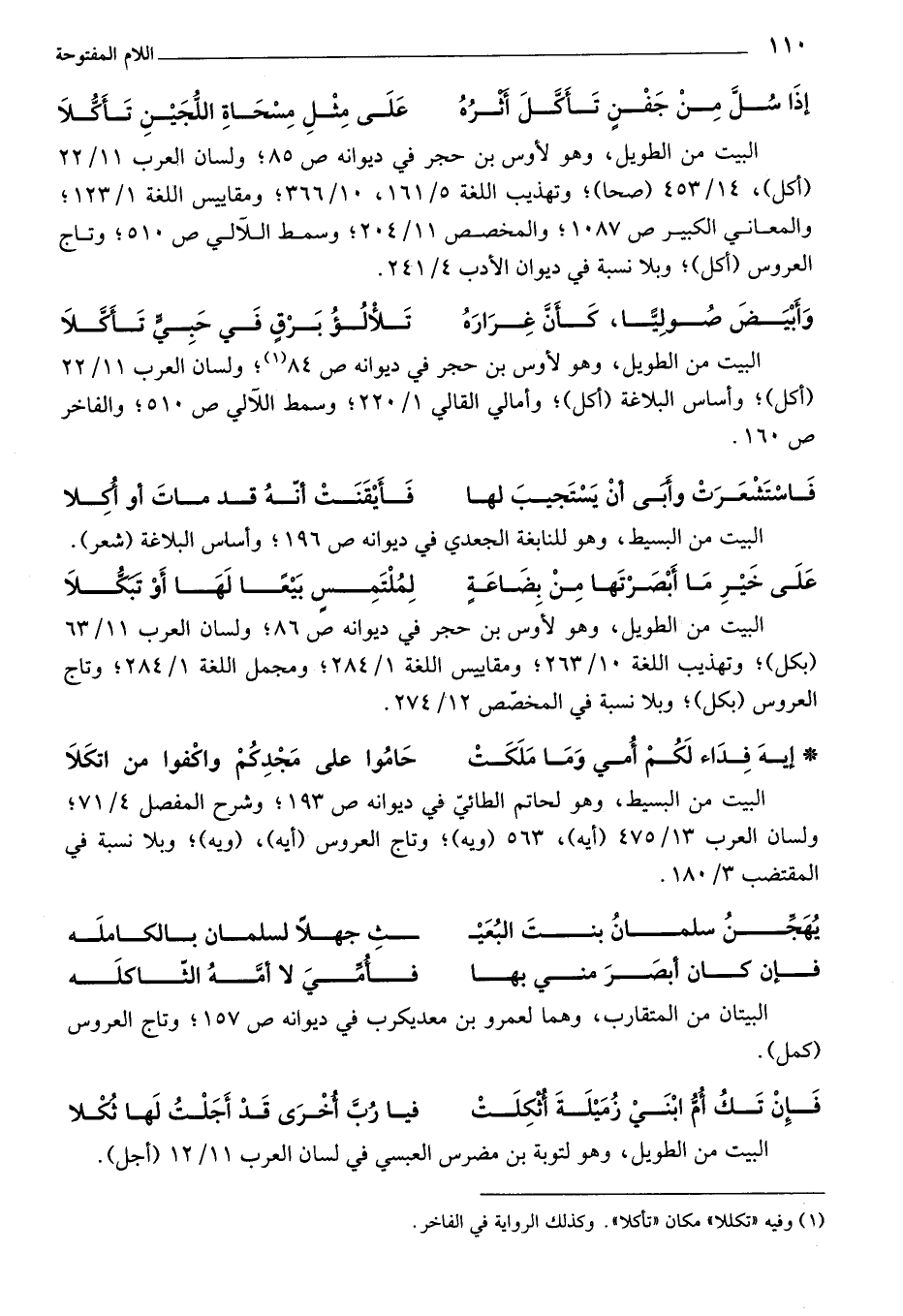 (¬1) وفيه "تكللا، مكان "تأكلا". وكذلك الرواية في الفاخر.