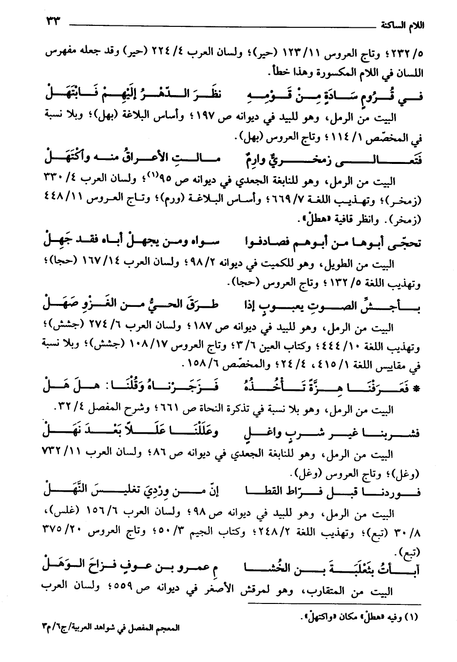 كتاب المعجم المفصل في شواهد العربية (اسم الجزء: 6)