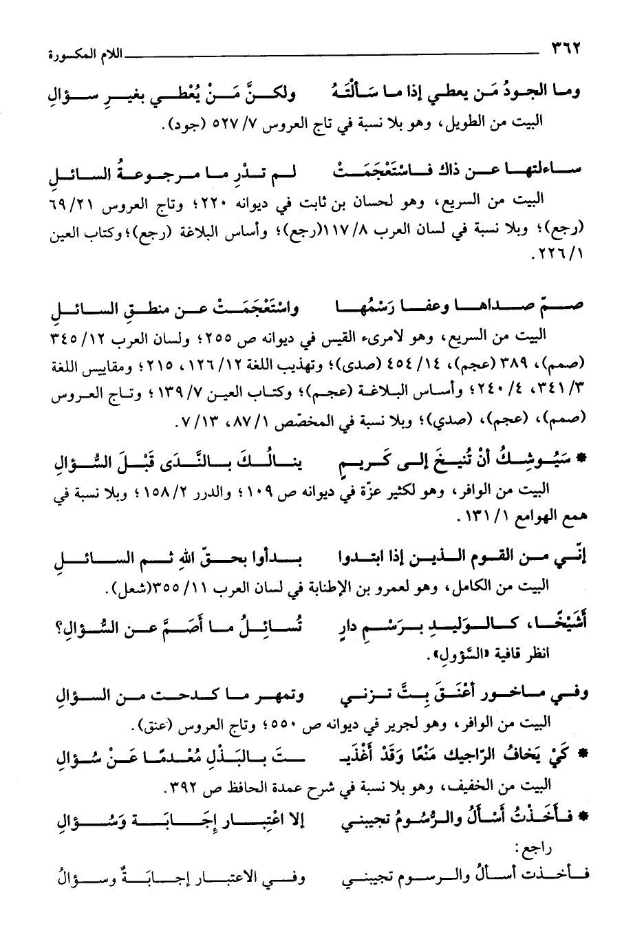 ساءلتها عن ذاك فاستعجمت لم تدر ما مرجوعة السائل