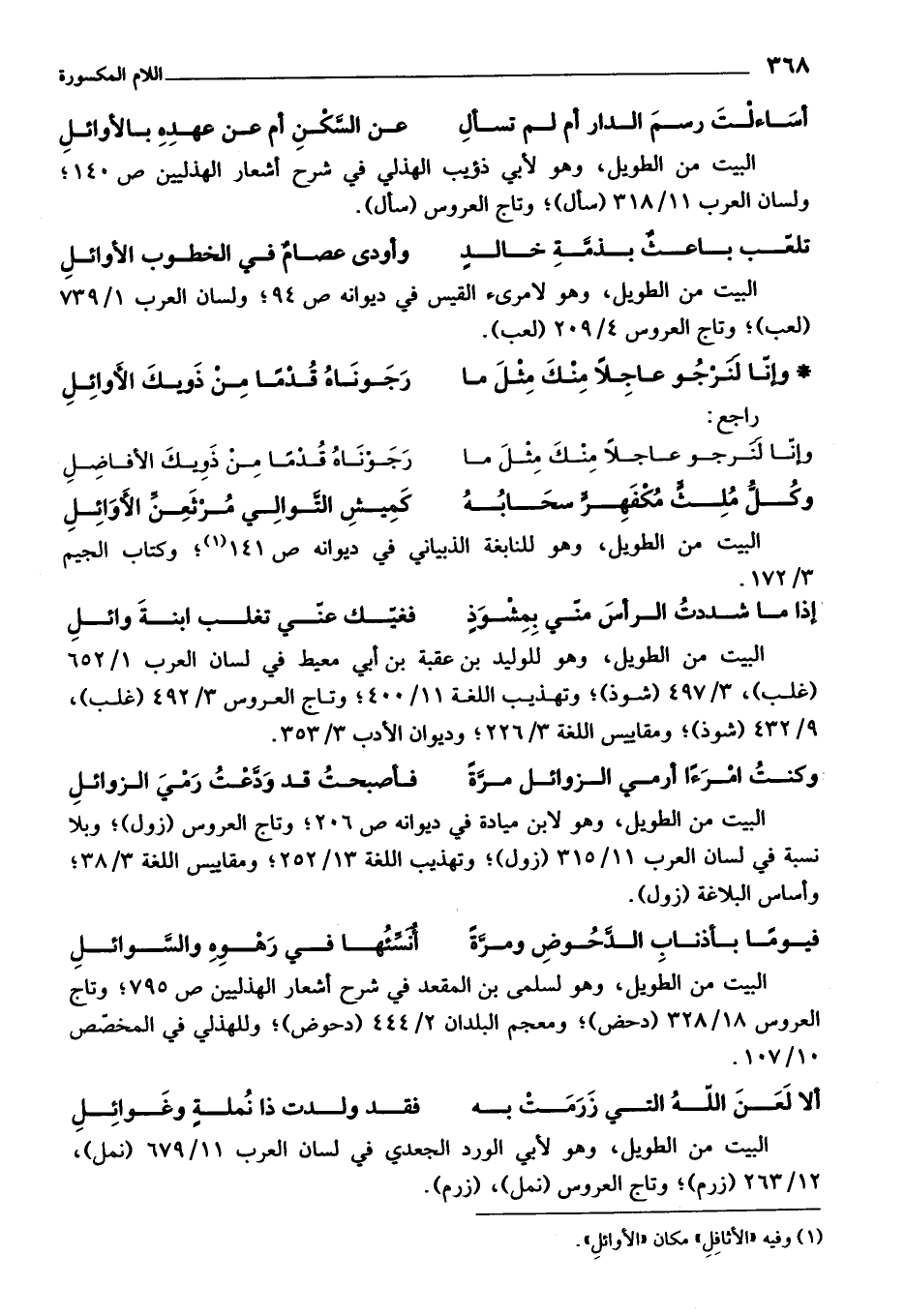 (¬1) وفيه "الأثافل " مكان "الأوائل".