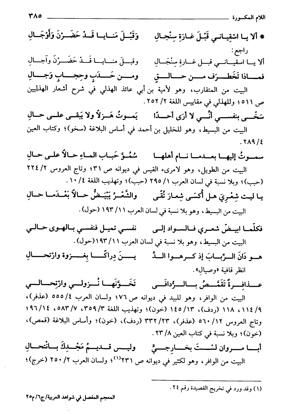 كتاب المعجم المفصل في شواهد العربية (اسم الجزء: 6)