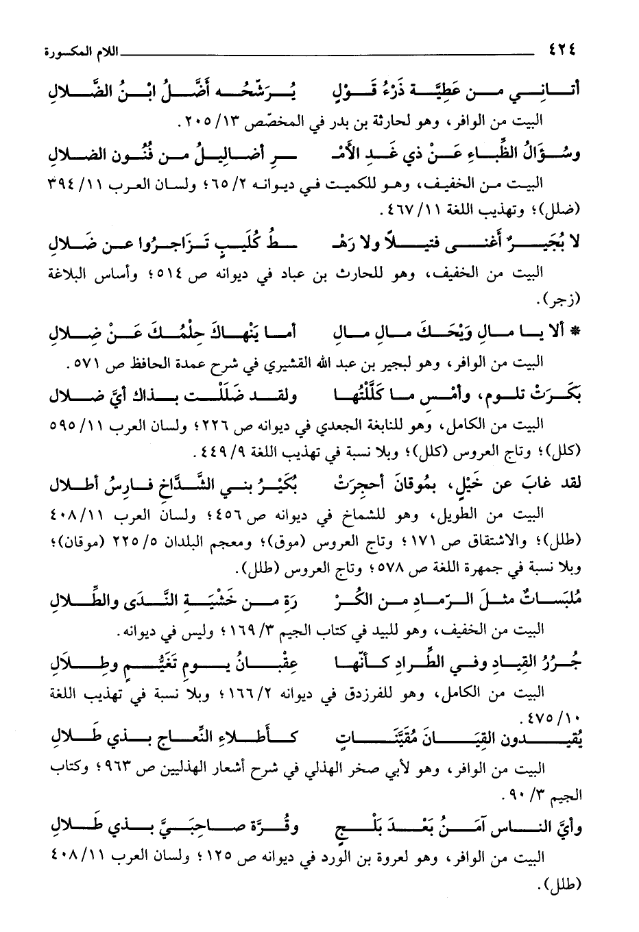 البيت من الخفيف، وهو للكميت في ديوانه 2/ 65؛ ولسان العرب 11/ 394 (ضلل)؛ وتهذيب اللغة 11/ 467.
