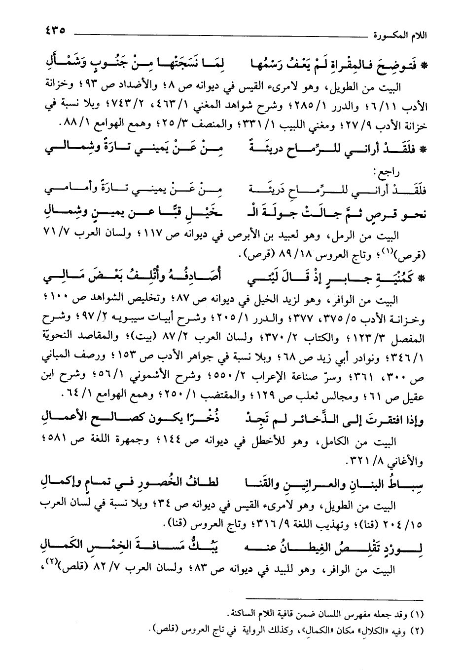 (¬2) وفيه "الكلال" مكان "الكمال"، وكذلك الرواية في تاج العروس (قلص).