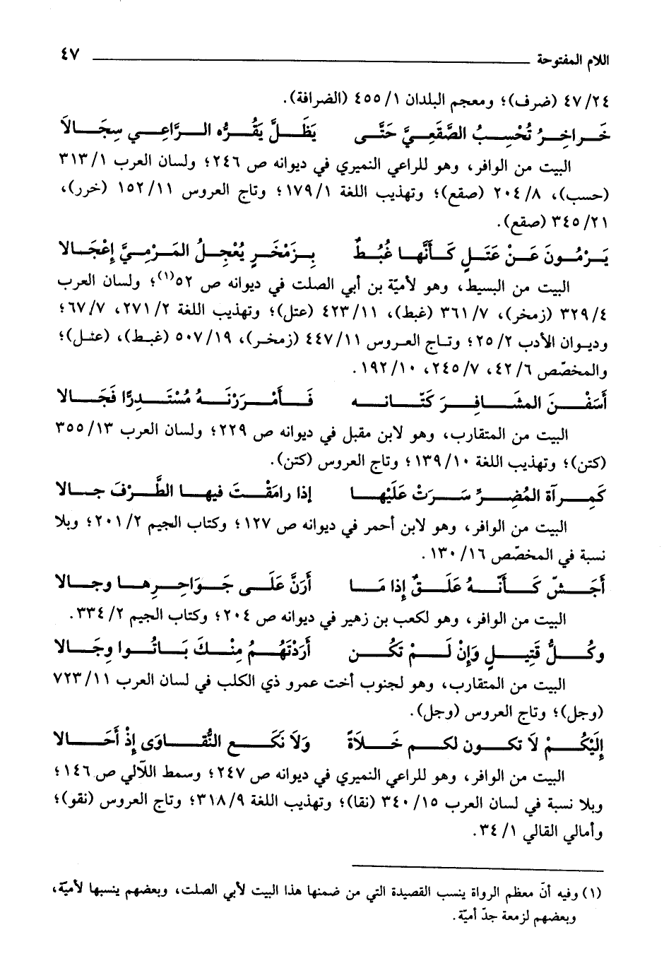 (¬1) وفيه أن معظم الرواة ينسب القصيدة التي من ضمنها هذا البيت لأبي الصلت، وبعضهم ينسبها لأمية، وبعضهم لزمعة جد أمية.