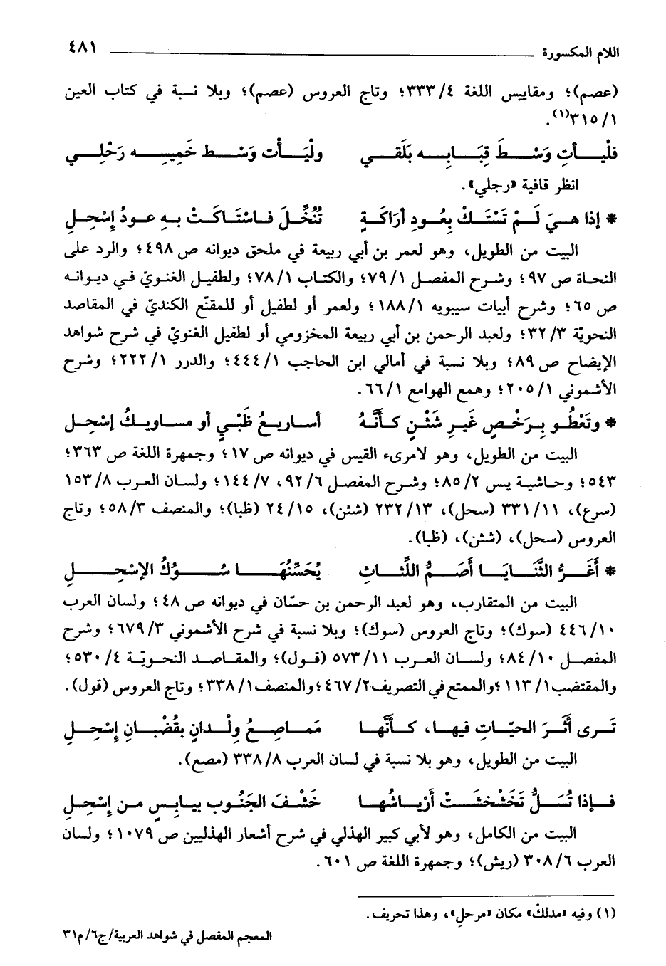 كتاب المعجم المفصل في شواهد العربية (اسم الجزء: 6)