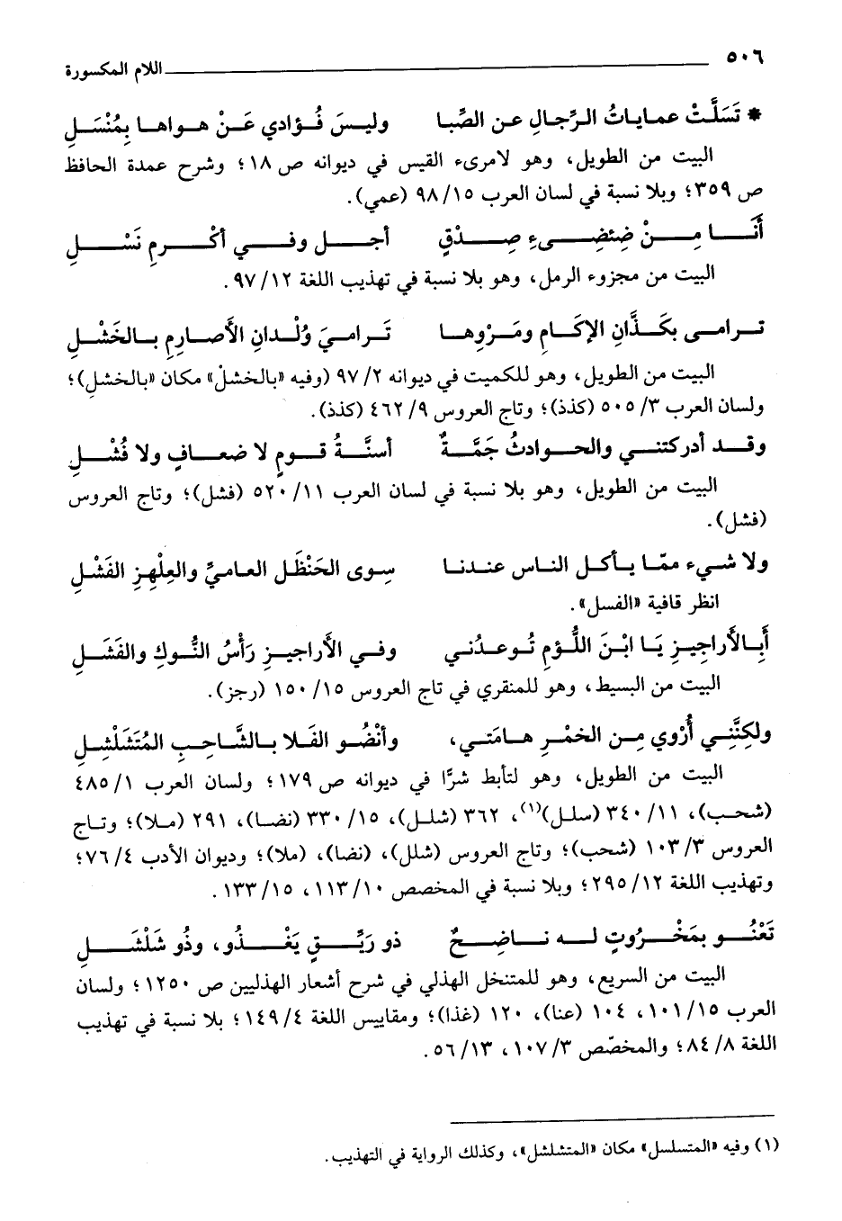 انظر قافية "الفسل"