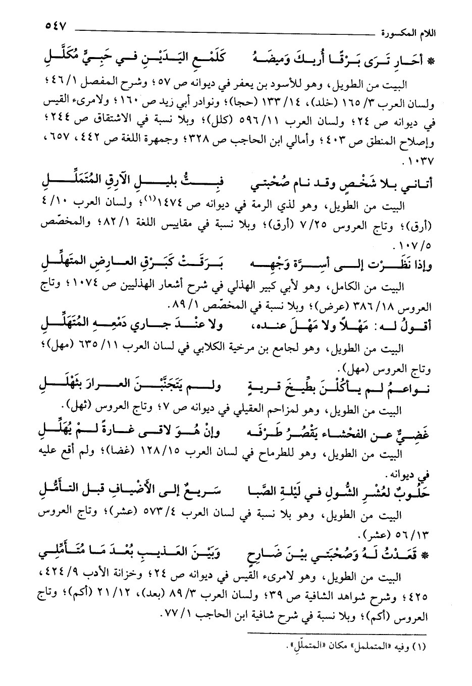 * أحار ترى برقا أريك وميضه كلمع اليدين في حبي مكلل