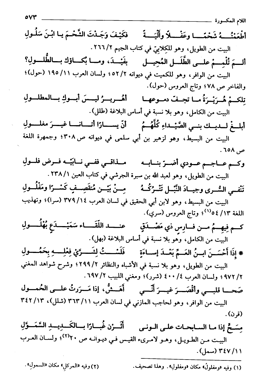 (¬2) وفيه "المركل" مكان "السمول ".