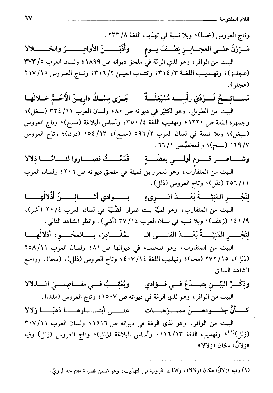 (¬1) وفيه " زلالُ" مكان " ولالا"، وكذلك الرواية في التهذيب، وهو ضمن قصيدة مفتوحة الرويّ
