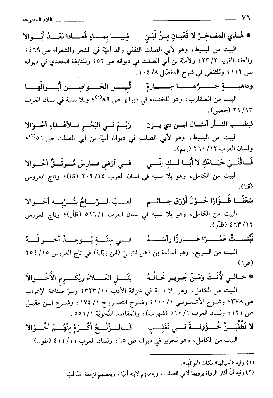 (¬2) وفيه أن أكثر الرواة يرويها لأبي الصلت، وبعضهم لآبنه أمية، وبعضهم لزمعة جد أمية.