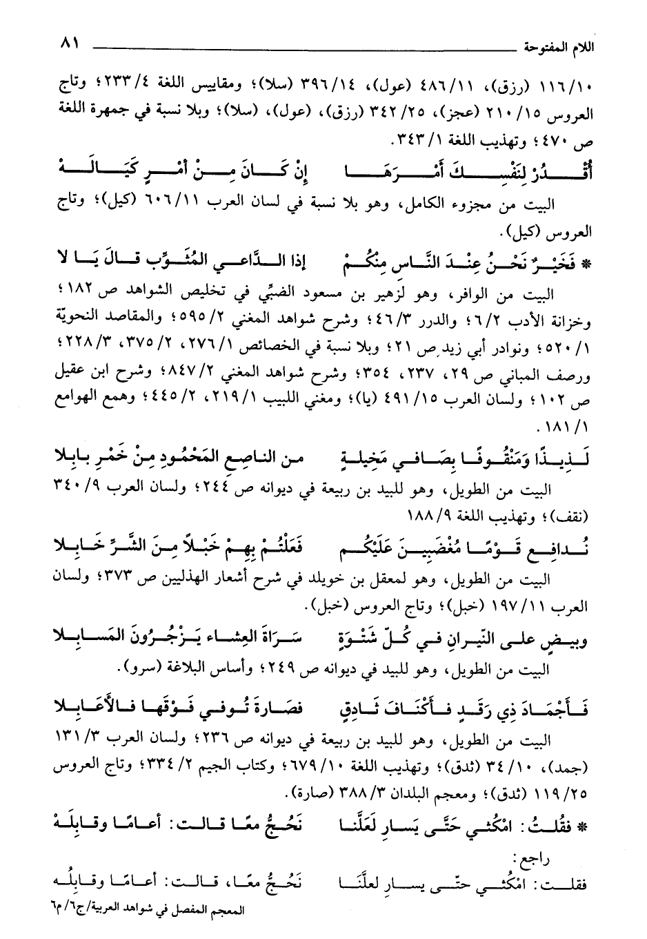 كتاب المعجم المفصل في شواهد العربية (اسم الجزء: 6)