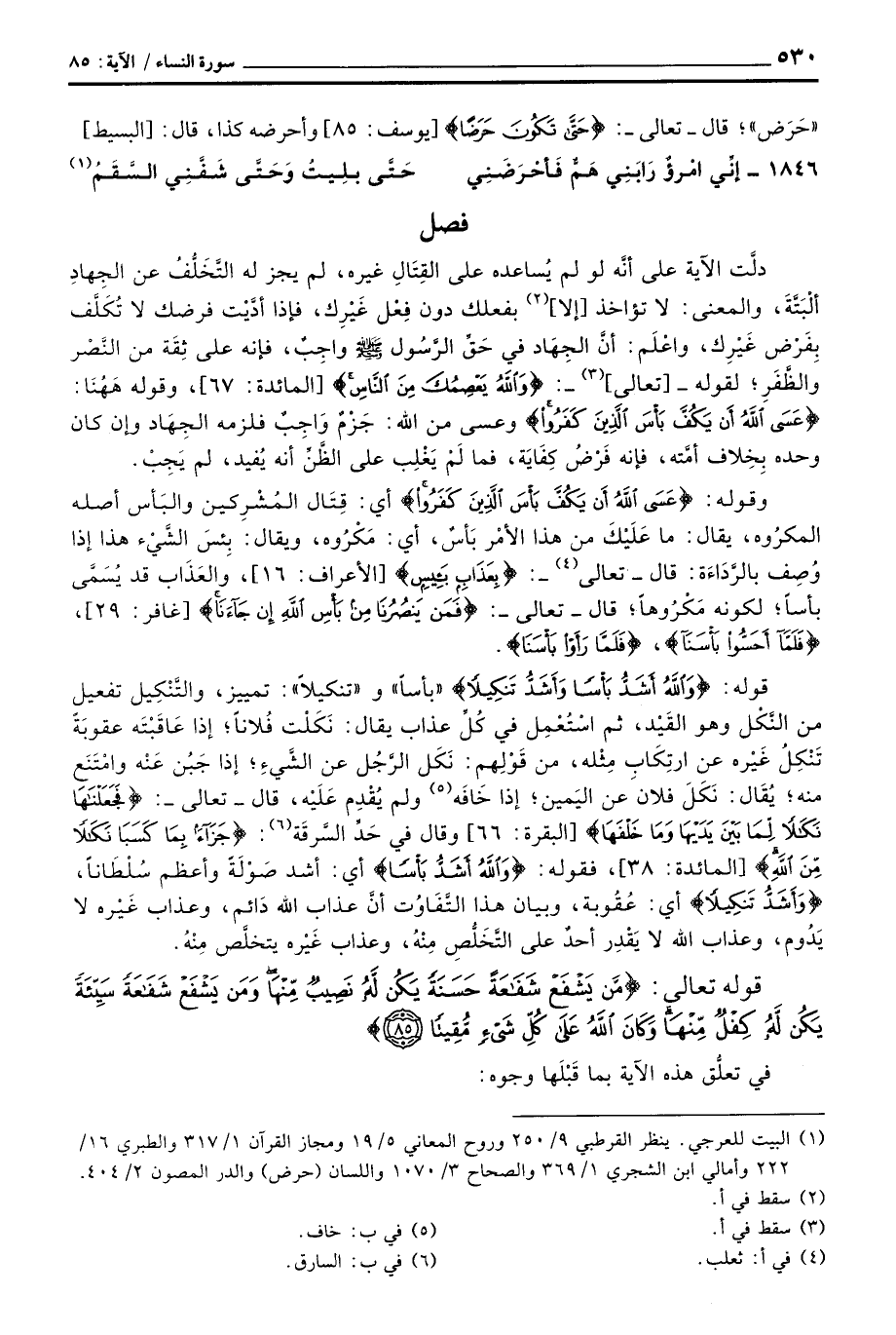 {والله يَعْصِمُكَ مِنَ الناس} [المائدة: 67] ، وقوله هَهُنَا: {والله أَشَدُّ بَأْساً وَأَشَدُّ تَنكِيلاً} وعسى من الله: جَزْمٌ وَاجِبٌ فلزمه الجِهَاد وإن كان وحده بِخِلاف أمَّته، فإنه فَرْضُ كِفَايَة، فما لَمْ يَغْلِب على الظَّنِّ أنه يُفيد، لم يَجِبْ.