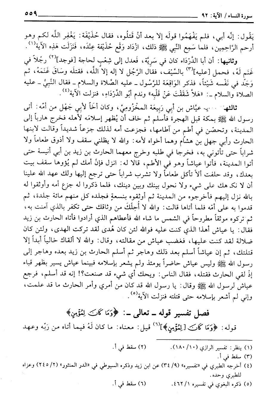 فصل تفسير قوله - تعالى -: {وَمَا كَانَ لِمُؤْمِنٍ}