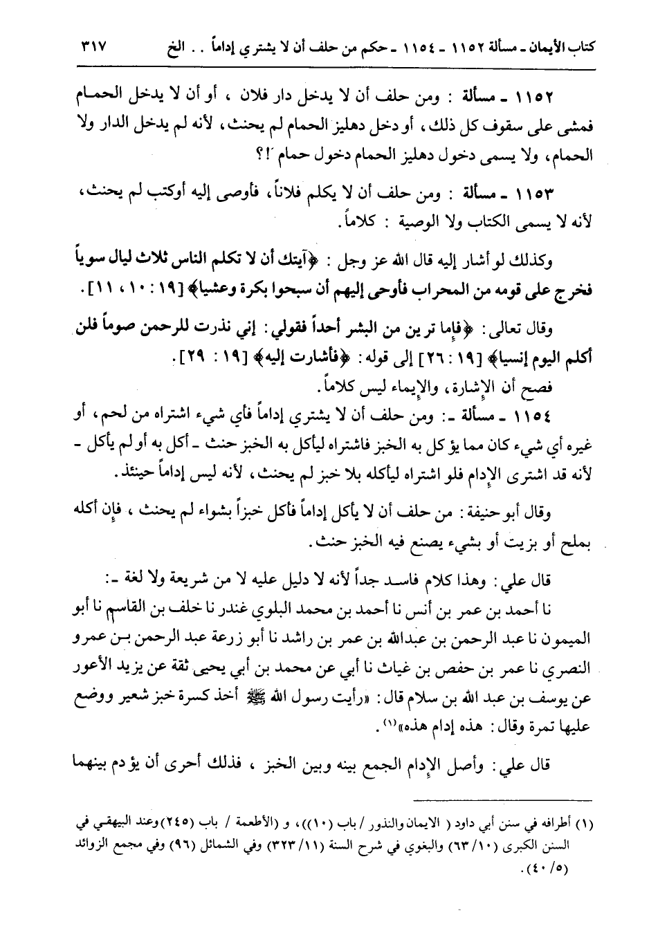 قَالَ عَلِيٌّ: وَهَذَا كَلَامٌ فَاسِدٌ جِدًّا لِأَنَّهُ لَا دَلِيلَ عَلَيْهِ لَا مِنْ شَرِيعَةٍ وَلَا لُغَةٍ -: نا أَحْمَدُ بْنُ عُمَرَ بْنِ أَنَسٍ نا أَحْمَدُ بْنُ مُحَمَّدٍ الْبَلَوِيُّ غُنْدَرٌ نا خَلَفُ بْنُ الْقَاسِمِ نا أَبُو الْمَيْمُونِ نا عَبْدُ الرَّحْمَنِ بْنُ عَبْدِ اللَّهِ بْنِ عُمَرَ بْنِ رَاشِدٍ نا أَبُو زُرْعَةَ عَبْدُ الرَّحْمَنِ بْنُ عَمْرٍو النَّصْرِيُّ نا عُمَرُ بْنُ حَفْصِ بْنِ غِيَاثٍ نا أَبِي عَنْ مُحَمَّدِ بْنِ يَحْيَى ثِقَةٌ عَنْ يَزِيدَ الْأَعْوَرِ عَنْ يُوسُفَ بْنِ عَبْدِ اللَّهِ بْنِ سَلَامٍ قَالَ: «رَأَيْتُ رَسُولَ اللَّهِ - صَلَّى اللَّهُ عَلَيْهِ وَسَلَّمَ - أَخَذَ كِسْرَةَ خُبْزِ شَعِيرٍ وَوَضَعَ عَلَيْهَا تَمْرَةً وَقَالَ: هَذِهِ إدَامُ هَذِهِ» .