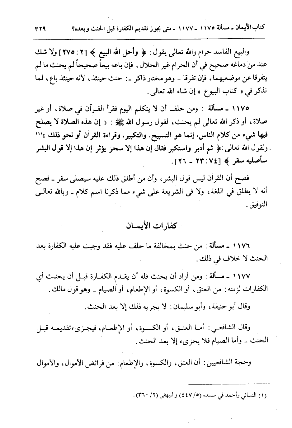 كَفَّارَاتُ الْأَيْمَانِ 1176 - مَسْأَلَةٌ