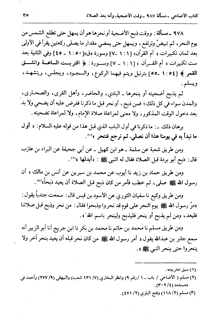 بُرْهَانُ ذَلِكَ -: مَا ذَكَرْنَا فِي أَوَّلِ الْبَابِ الَّذِي قَبْلَ هَذَا مِنْ قَوْلِهِ - عَلَيْهِ السَّلَامُ -: «أَوَّلُ مَا نَبْدَأُ بِهِ فِي يَوْمِنَا هَذَا أَنْ نُصَلِّيَ، ثُمَّ نَرْجِعَ فَنَنْحَرَ» .