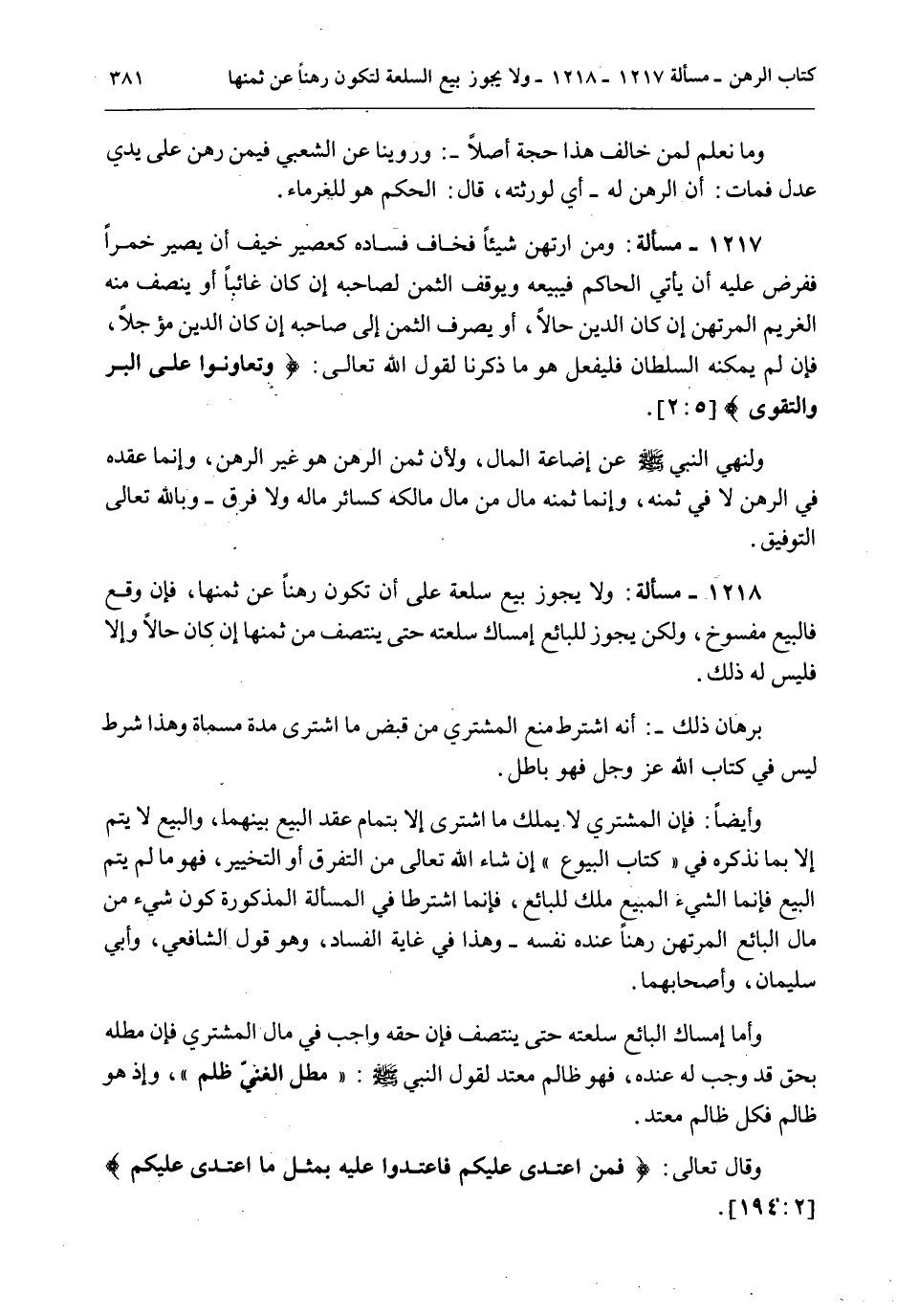 وَأَيْضًا: فَإِنَّ الْمُشْتَرِيَ لَا يَمْلِكُ مَا اشْتَرَى إلَّا بِتَمَامِ عَقْدِ الْبَيْعِ بَيْنَهُمَا، وَالْبَيْعُ لَا يَتِمُّ إلَّا بِمَا نَذْكُرُهُ فِي " كِتَابِ الْبُيُوعِ " إنْ شَاءَ اللَّهُ تَعَالَى مِنْ التَّفَرُّقِ أَوْ التَّخْيِيرِ، فَهُوَ مَا لَمْ يَتِمّ الْبَيْعُ فَإِنَّمَا الشَّيْءُ الْمَبِيعُ مِلْكٌ لِلْبَائِعِ، فَإِنَّمَا اشْتَرَطَا فِي الْمَسْأَلَةِ الْمَذْكُورَةِ كَوْنَ شَيْءٍ مِنْ مَالِ الْبَائِعِ الْمُرْتَهِنِ رَهْنًا عِنْدَهُ نَفْسِهِ - وَهَذَا فِي غَايَةِ الْفَسَادِ، وَهُوَ قَوْلُ الشَّافِعِيِّ، وَأَبِي سُلَيْمَانَ، وَأَصْحَابِهِمَا.