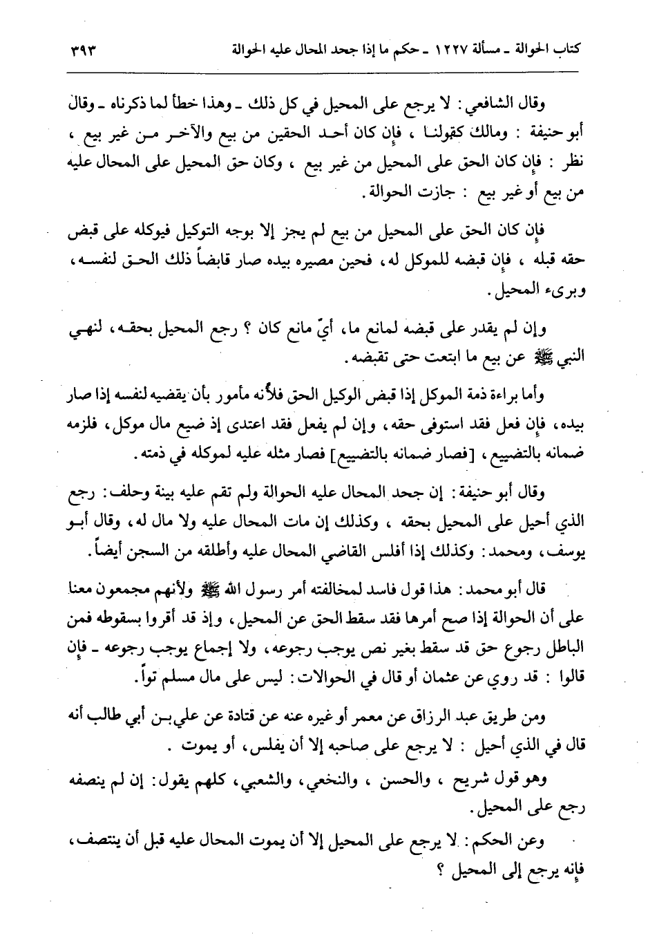 قَالَ أَبُو مُحَمَّدٍ: هَذَا قَوْلٌ فَاسِدٌ لِمُخَالَفَتِهِ أَمْرَ رَسُولِ اللَّهِ - صَلَّى اللَّهُ عَلَيْهِ وَسَلَّمَ - وَلِأَنَّهُمْ مُجْمِعُونَ مَعَنَا عَلَى أَنَّ الْحَوَالَةَ إذَا صَحَّ أَمْرُهَا فَقَدْ سَقَطَ الْحَقُّ عَنْ الْمُحِيلِ، وَإِذْ قَدْ أَقَرُّوا بِسُقُوطِهِ فَمِنْ الْبَاطِلِ رُجُوعُ حَقٍّ قَدْ سَقَطَ بِغَيْرِ نَصٍّ يُوجِبُ رُجُوعَهُ، وَلَا إجْمَاعَ يُوجِبُ رُجُوعَهُ - فَإِنْ قَالُوا: قَدْ رُوِيَ عَنْ عُثْمَانَ أَوْ قَالَ فِي الْحَوَالَات: لَيْسَ عَلَى مَالِ مُسْلِمٍ تَوًّا.
