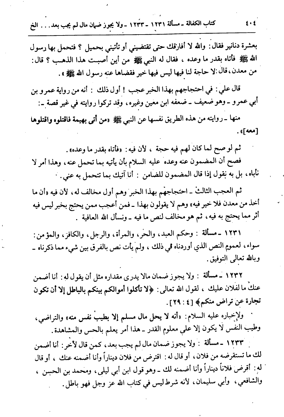 بِعَشْرَةِ دَنَانِيرَ فَقَالَ: وَاَللَّهِ لَا أُفَارِقُكَ حَتَّى تَقْضِيَنِي أَوْ تَأْتِيَنِي بِحَمِيلٍ؟ فَتَحَمَّلَ بِهَا رَسُولُ اللَّهِ - صَلَّى اللَّهُ عَلَيْهِ وَسَلَّمَ - فَأَتَاهُ بِقَدْرِ مَا وَعَدَهُ، فَقَالَ لَهُ النَّبِيُّ - صَلَّى اللَّهُ عَلَيْهِ وَسَلَّمَ - أَيْنَ أَصَبْتَ هَذَا الذَّهَبَ؟ قَالَ: مِنْ مَعْدِنٍ، قَالَ: لَا حَاجَةَ لَنَا فِيهَا لَيْسَ فِيهَا خَيْرٌ فَقَضَاهَا عَنْهُ رَسُولُ اللَّهِ - صَلَّى اللَّهُ عَلَيْهِ وَسَلَّمَ -» .