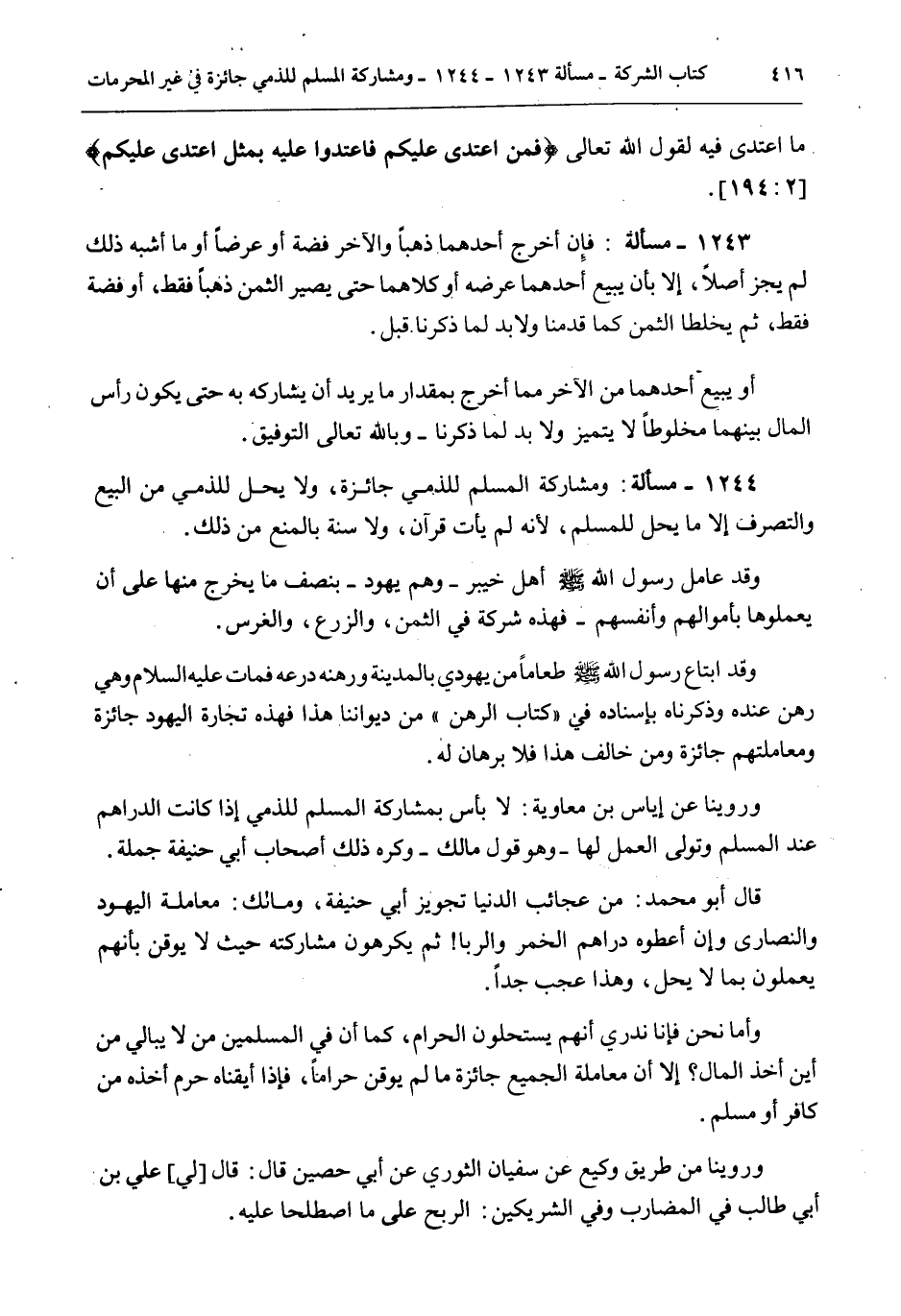 [مَسْأَلَةٌ مُشَارَكَةُ الْمُسْلِمِ لِلذِّمِّيِّ]