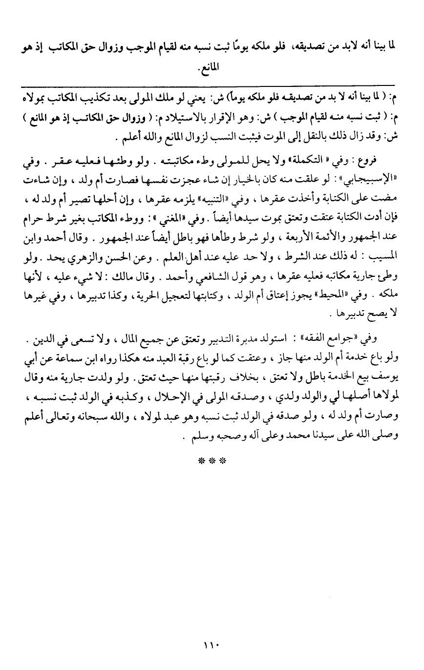 فروع: وفي " التكملة " ولا يحل للمولى وطء مكاتبته. ولو وطئها فعليه عقر. وفي " الإسبيجابي " لو علقت منه كان بالخيار إن شاء عجزت نفسها فصارت أم ولد، وإن شاءت مضت على الكتابة وأخذت عقرها، وفي " التنبيه " يلزمه عقرها، وإن أحلها تصير أم ولد له، فإن أدت الكتابة عتقت وتعتق بموت سيدها أيضا. وفي " المغني ": ووطء المكاتب بغير شرط حرام عند الجمهور والأئمة الأربعة، ولو شرط وطأها فهو باطل أيضاً عند الجمهور. وقال أحمد وابن المسيب: له ذلك عند الشرط، ولا حد عليه عند أهل العلم. وعن الحسن والزهري يحد. ولو وطئ جارية مكاتبه فعليه عقرها، وهو قول الشافعي وأحمد. وقال مالك: لا شيء عليه، لأنها ملكه. وفي " المحيط " يجوز إعتاق أم الولد، وكتابتها لتعجيل الحرية، وكذا تدبيرها، وفي غيرها لا يصح تدبيرها.
