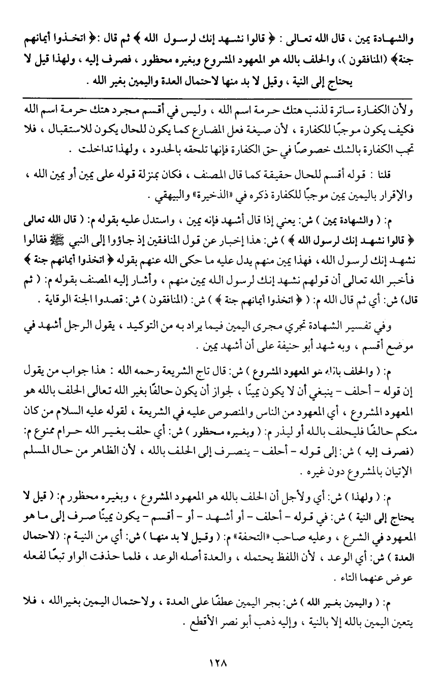 وفي تفسير الشهادة تجري مجرى اليمين فيما يراد به من التوكيد، يقول الرجل أشهد في موضع أقسم، وبه شهد أبو حنيفة على أن أشهد يمين.