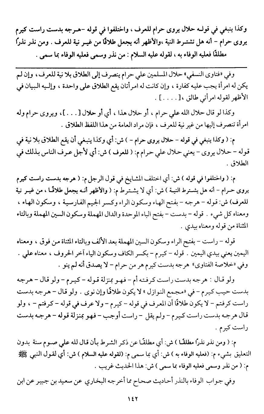 قوله - راست - بفتح الراء وسكون السين المهملة بعد الألف وبالتاء المثناة من فوق، ومعناه اليمين يعني بيدي اليمين. قوله - كيرم - بكسر الكاف وسكون الياء آخر الحروف، معناه علي. وفي " خلاصة الفتاوى " هرجه بدست كيرم هر من حرام - لا يصدق أنه لم ينو.